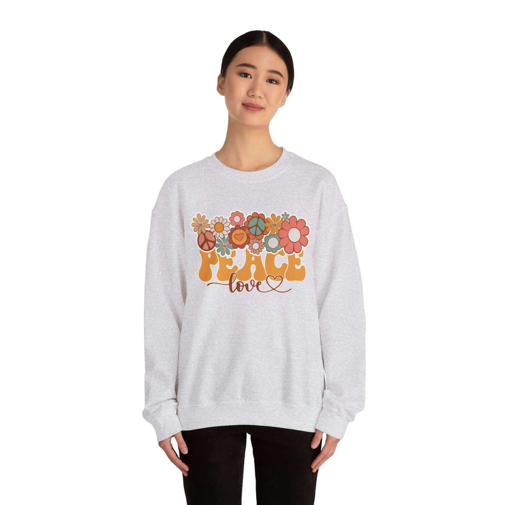 Perfect for layering over tees or pairing with jeans, this everyday casual sweatshirt adapts easily to your wardrobe. Its breathable yet warm fabric makes it suitable for outdoor activities or lounging at home. The boho peace love sweatshirt’s clean layout ensures the design reads clearly at a glance, balancing personality with wearability.