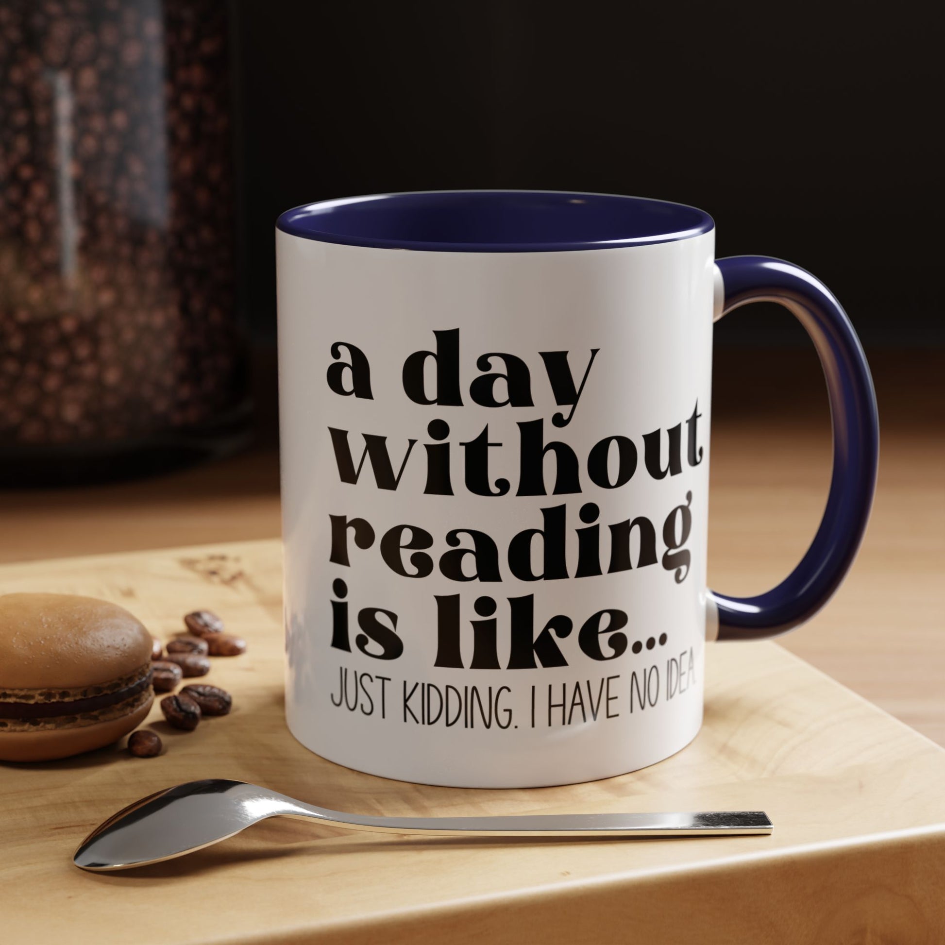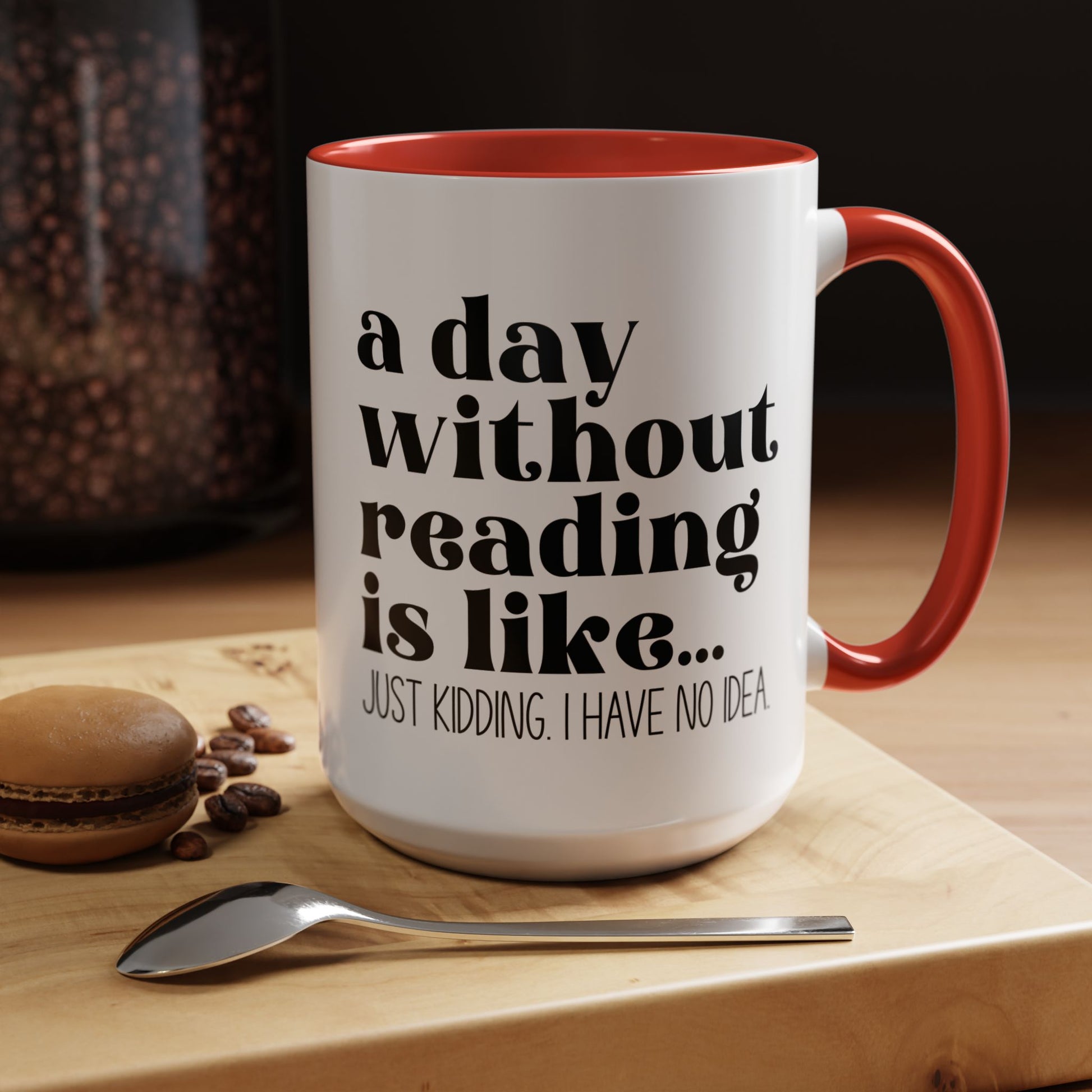 Funny Coffee Mug, Personalized Mug, A Day Without Reading is Accent Cup (11oz, 15oz), Gift Under 20, White Elephant Gift, Book Lover Cup
