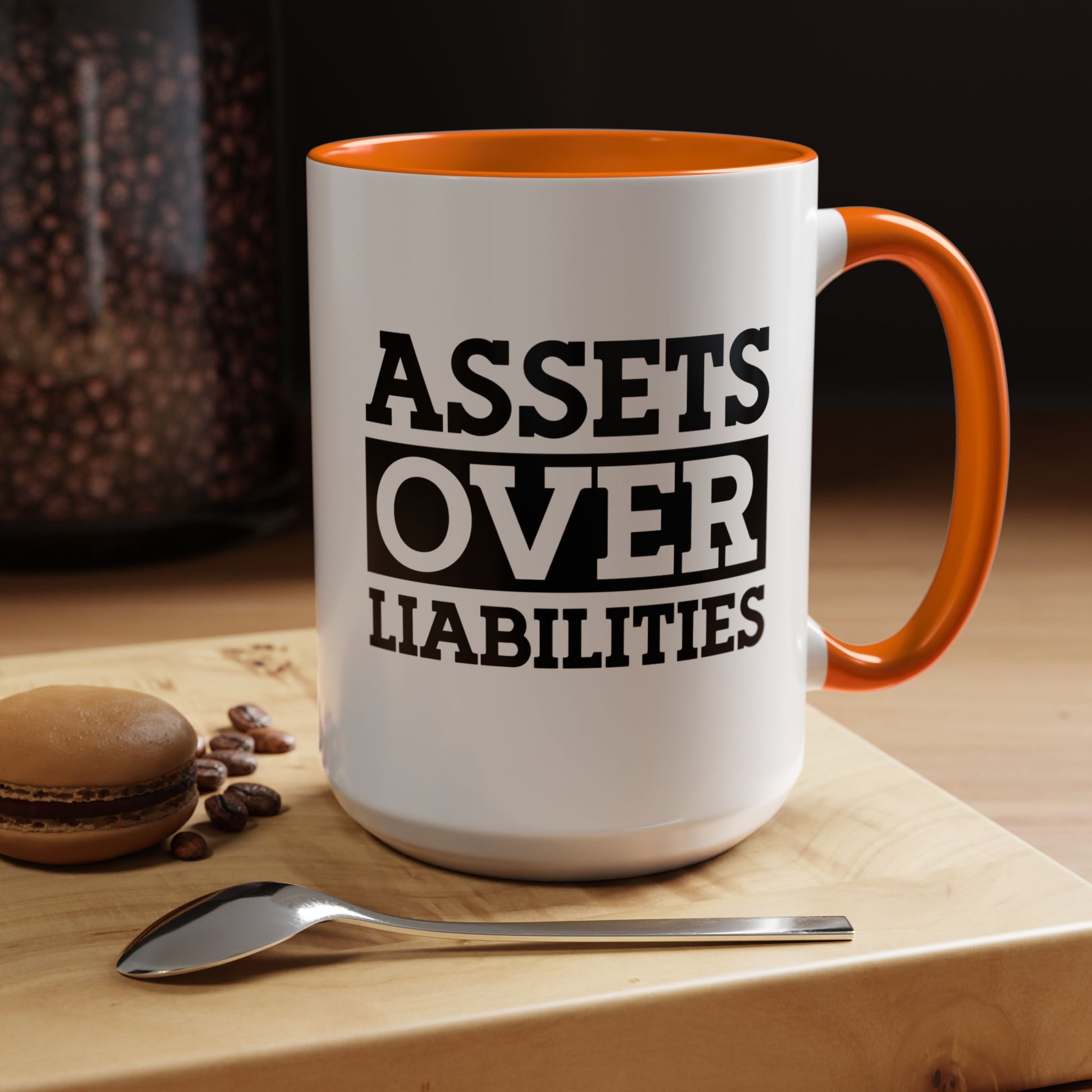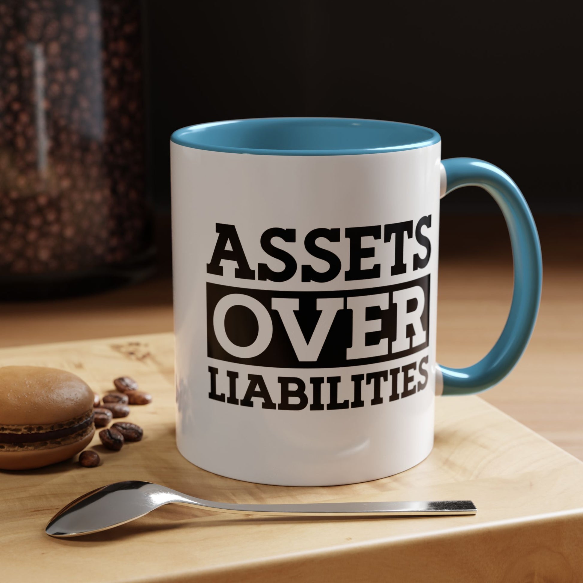 Funny Coffee Mug, Personalized Mug, Assets Over Liabilities Accent Coffee Cup (11, 15oz), Gift Under 20, White Elephant, CPA, Accountant Cup