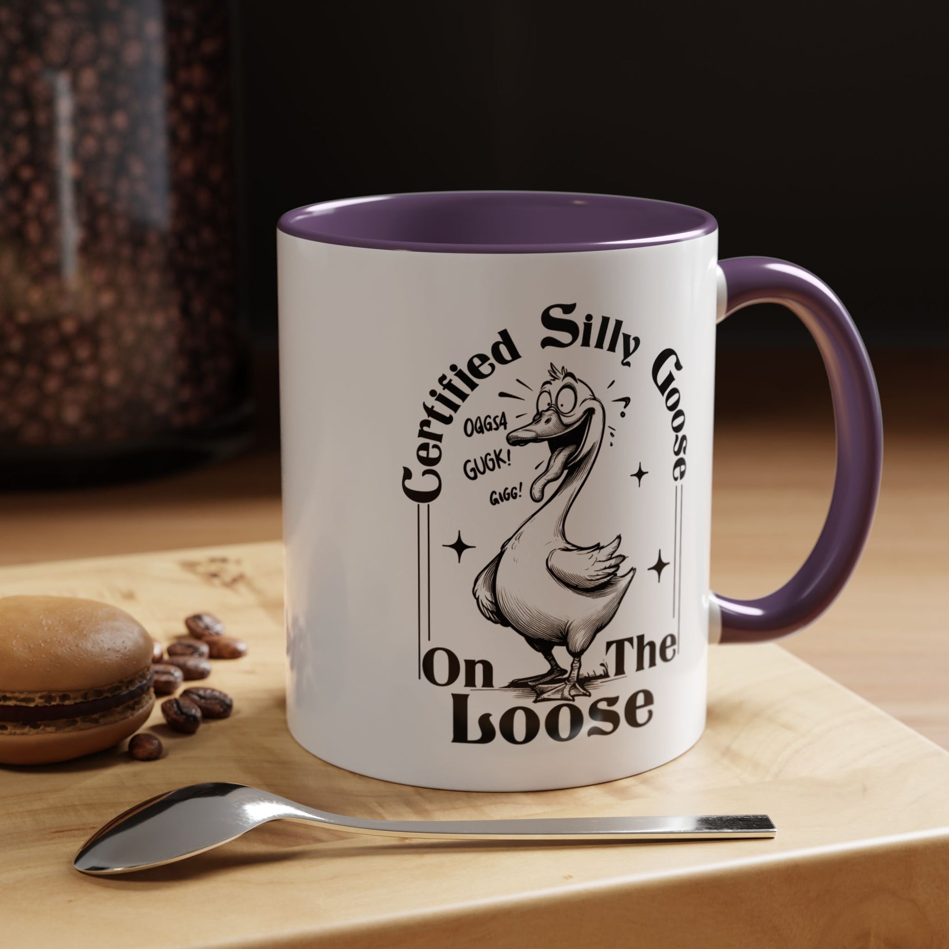 Funny Coffee Mug, Personalized Mug, Certified Silly Goose On The Loose, Accent Cup (11, 15oz), Gift Under 20, White Elephant