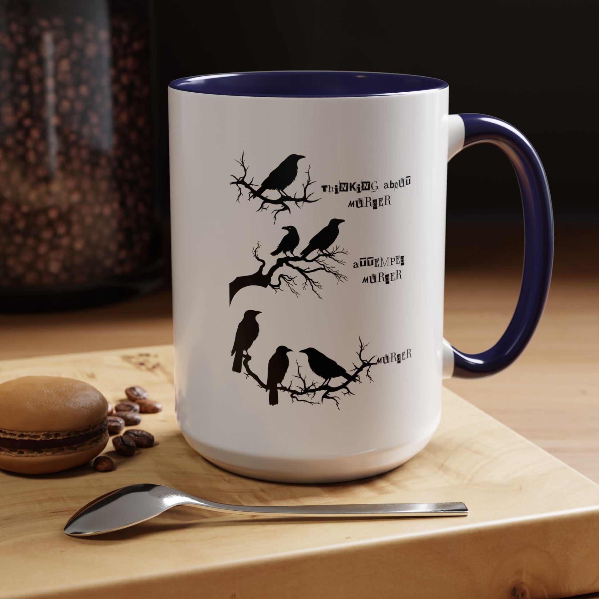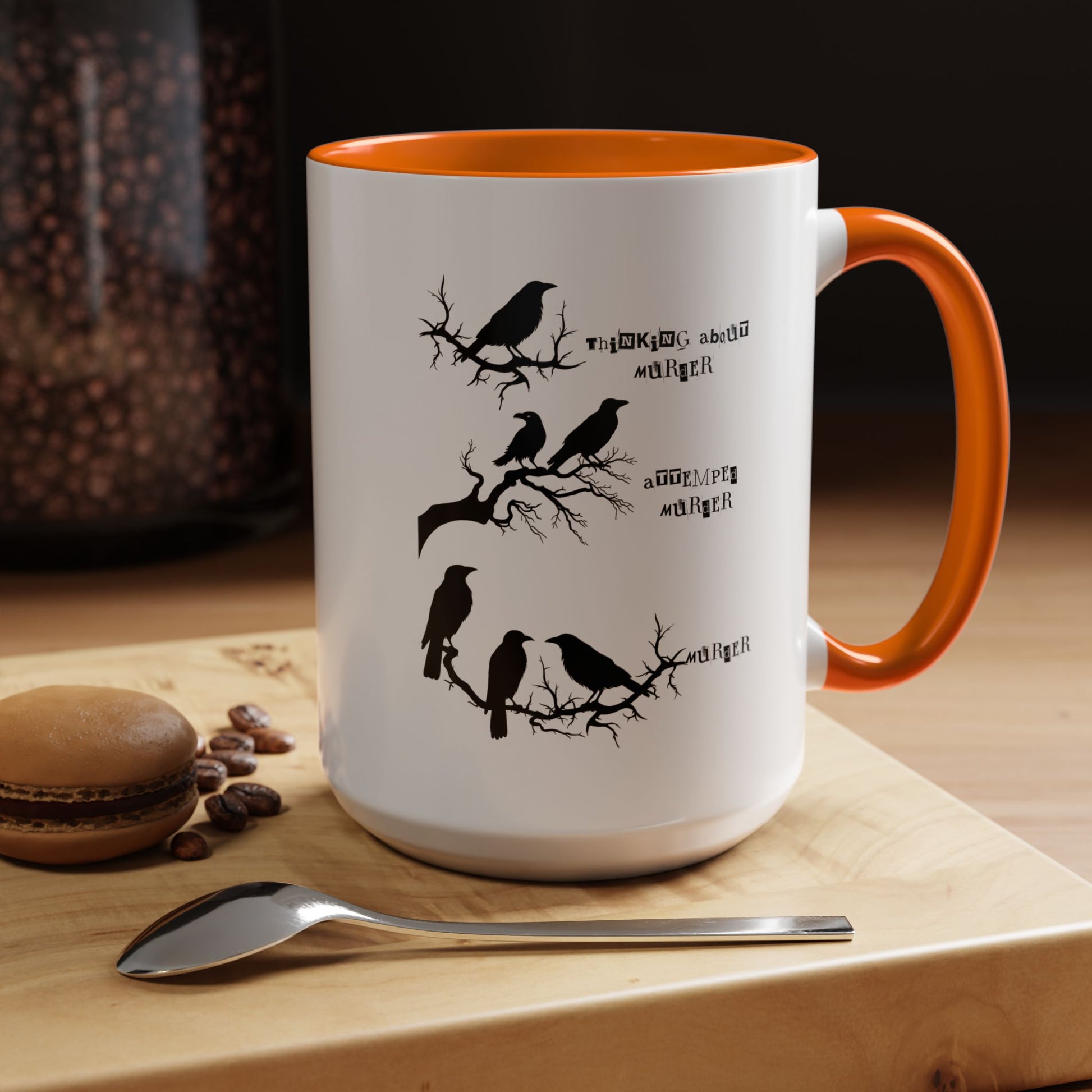Funny Coffee Mug, Personalized Mug, Crow Murder Meme Funny Accent Cup (11, 15oz), Gift Under 20