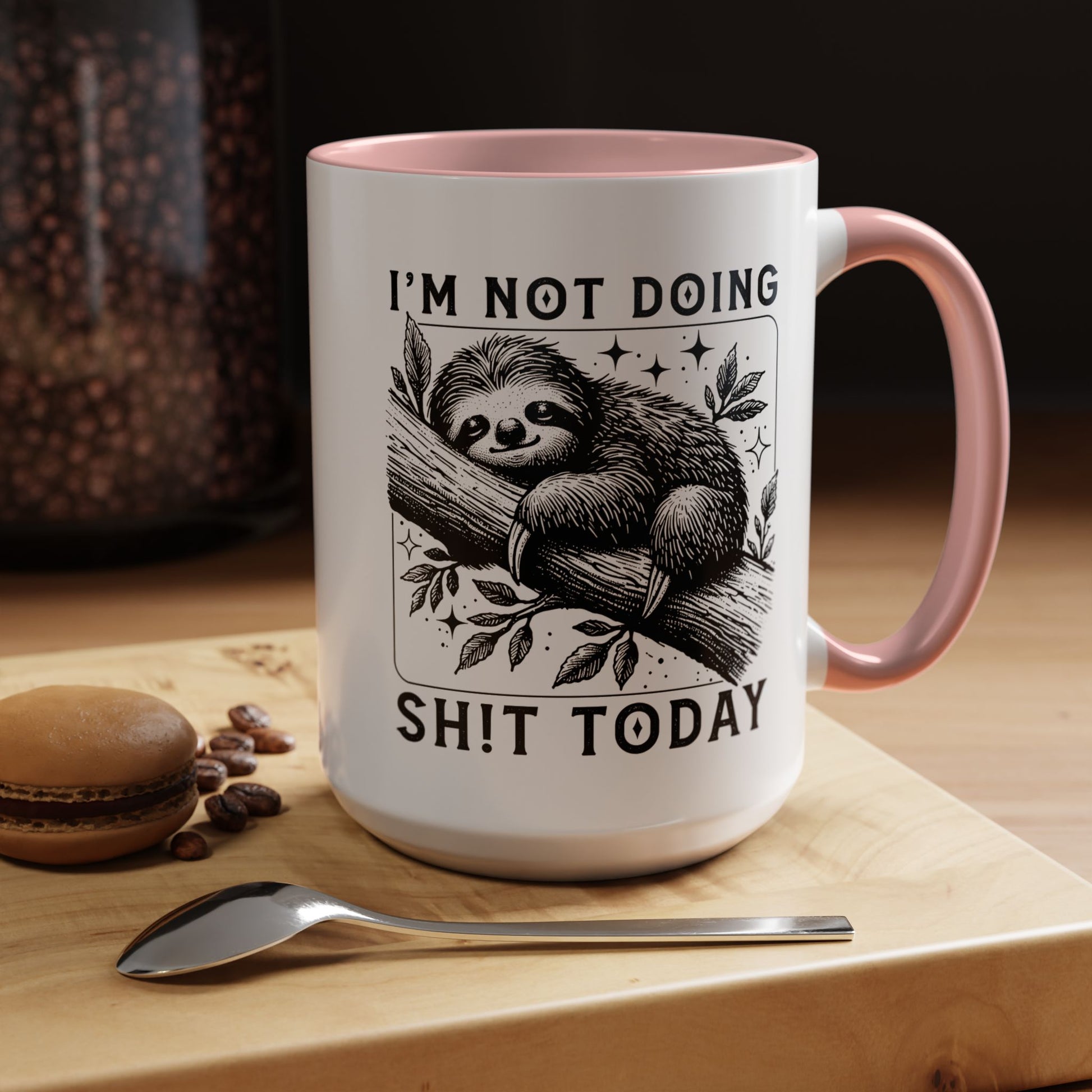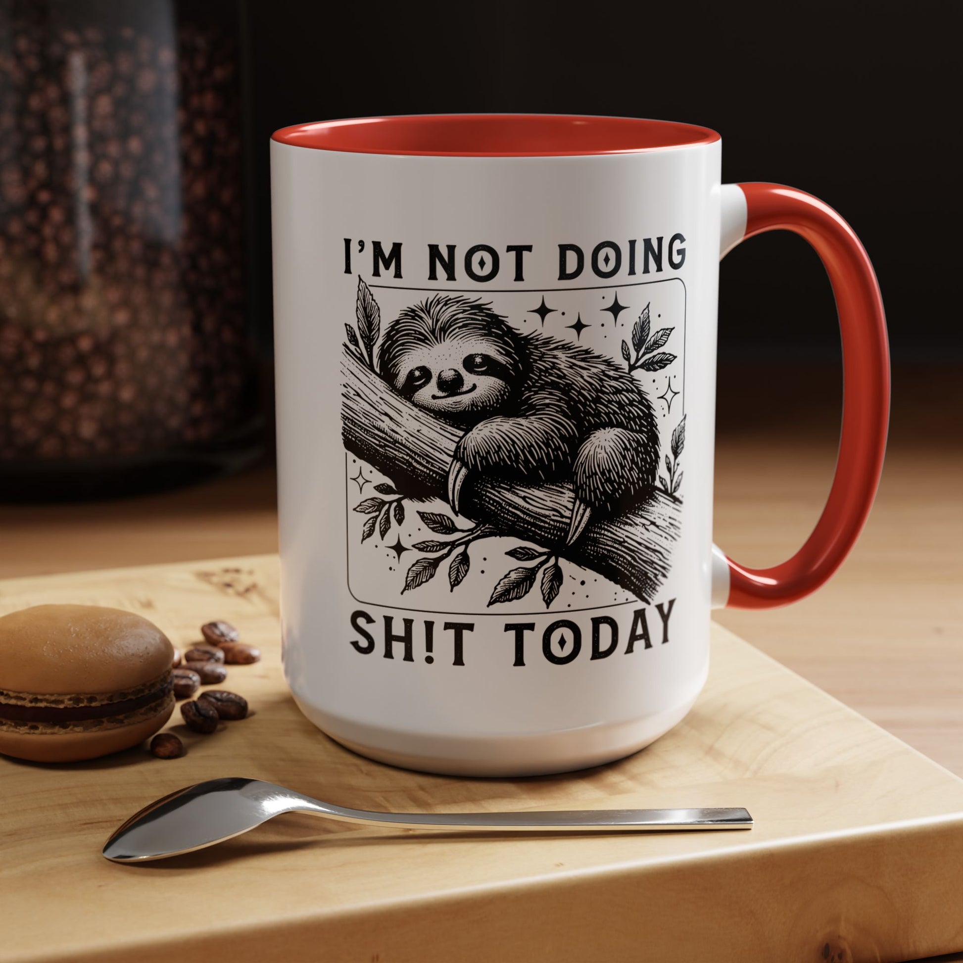 Funny Coffee Mug, Personalized Mug, Cute Sloth I am Not Doing Shit Today, Accent Cup (11, 15oz), Gift Under 20, White Elephant