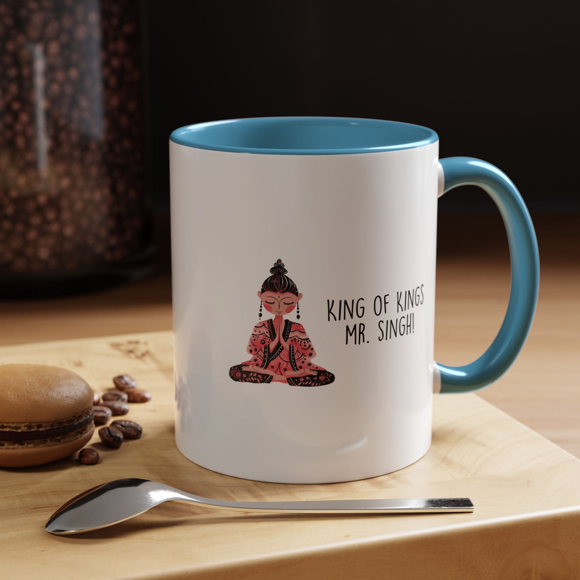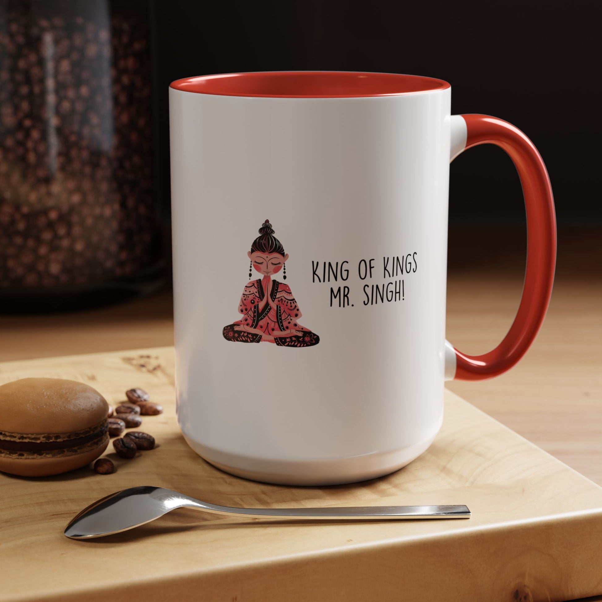 Funny Coffee Mug, Personalized Mug, Desi Roots Mug 'King Of Kings Mr Singh' Indian Accent Chai Cup (11/15oz), Gift Under 20, White Elephant