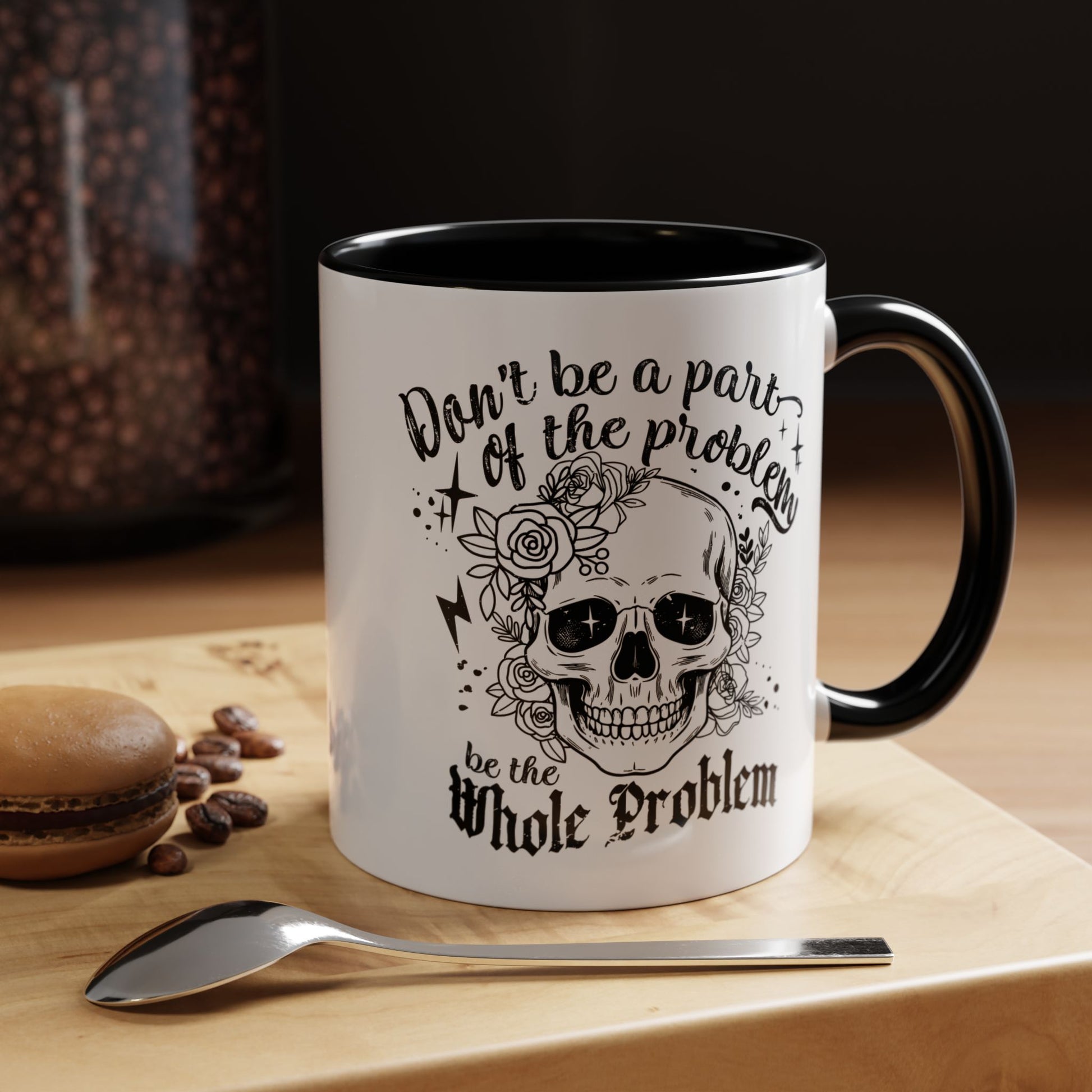 Funny Coffee Mug, Personalized Mug, Don't Be A Part Of The Problem Be The Whole Problem Accent Cup (11, 15oz), Gift Under 20, White Elephant