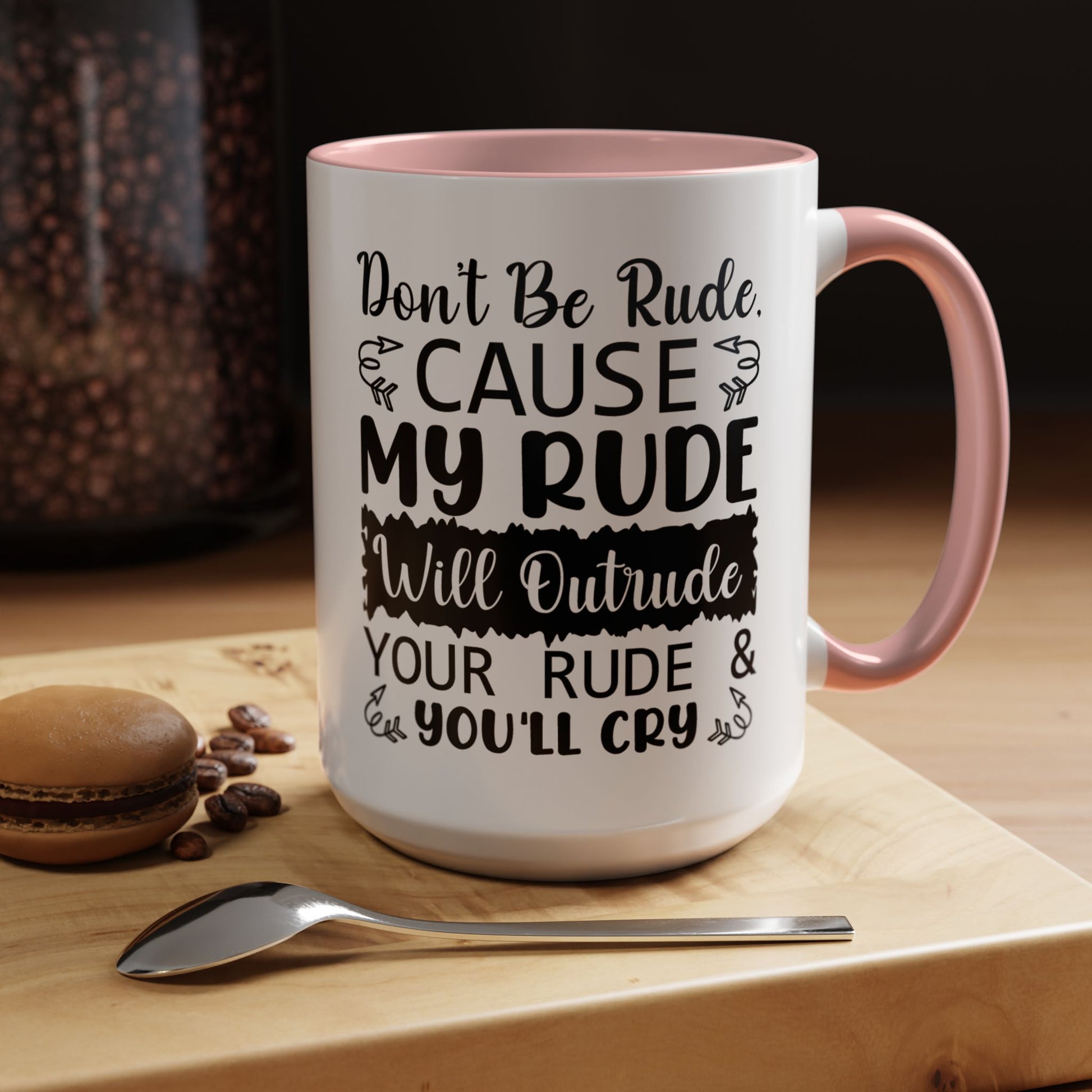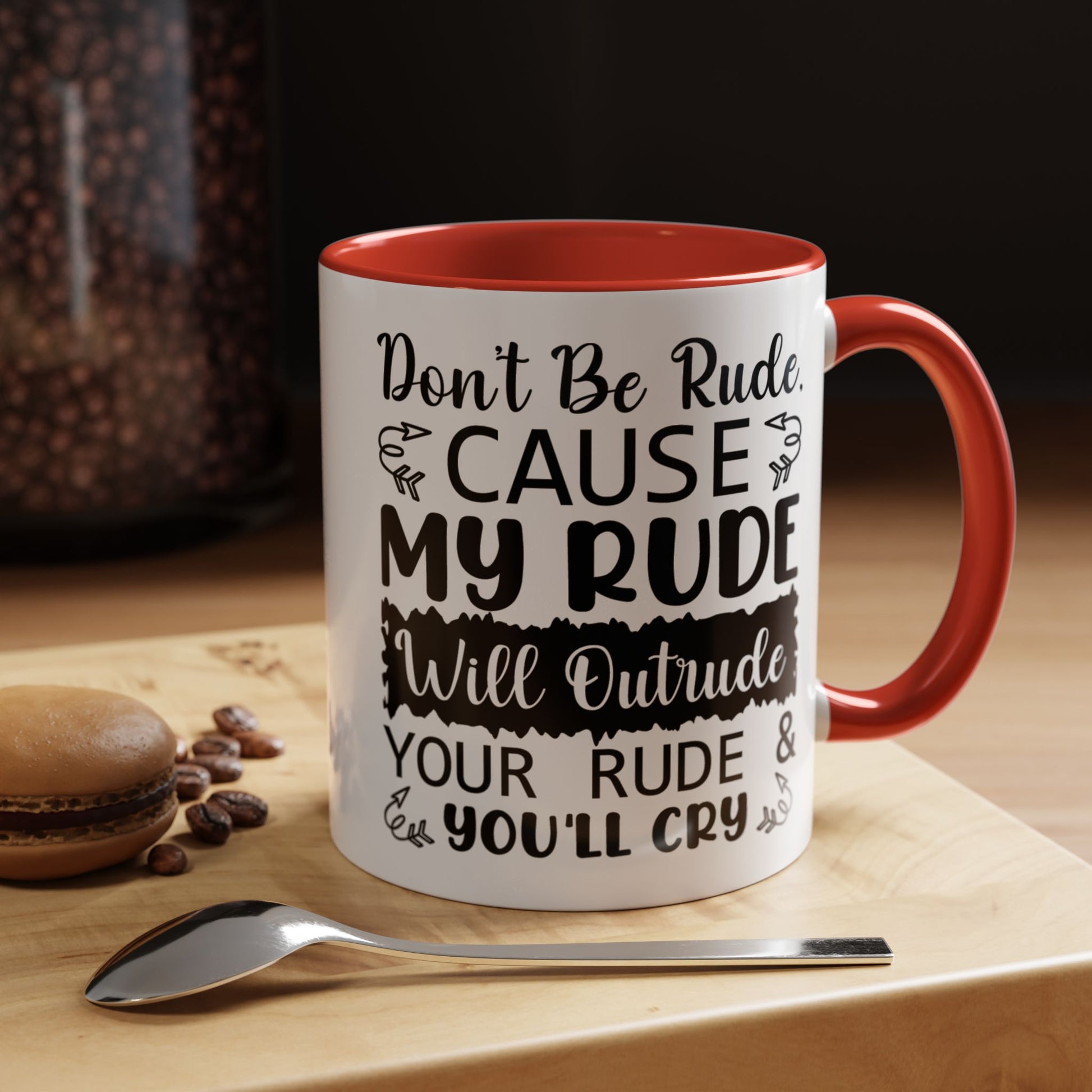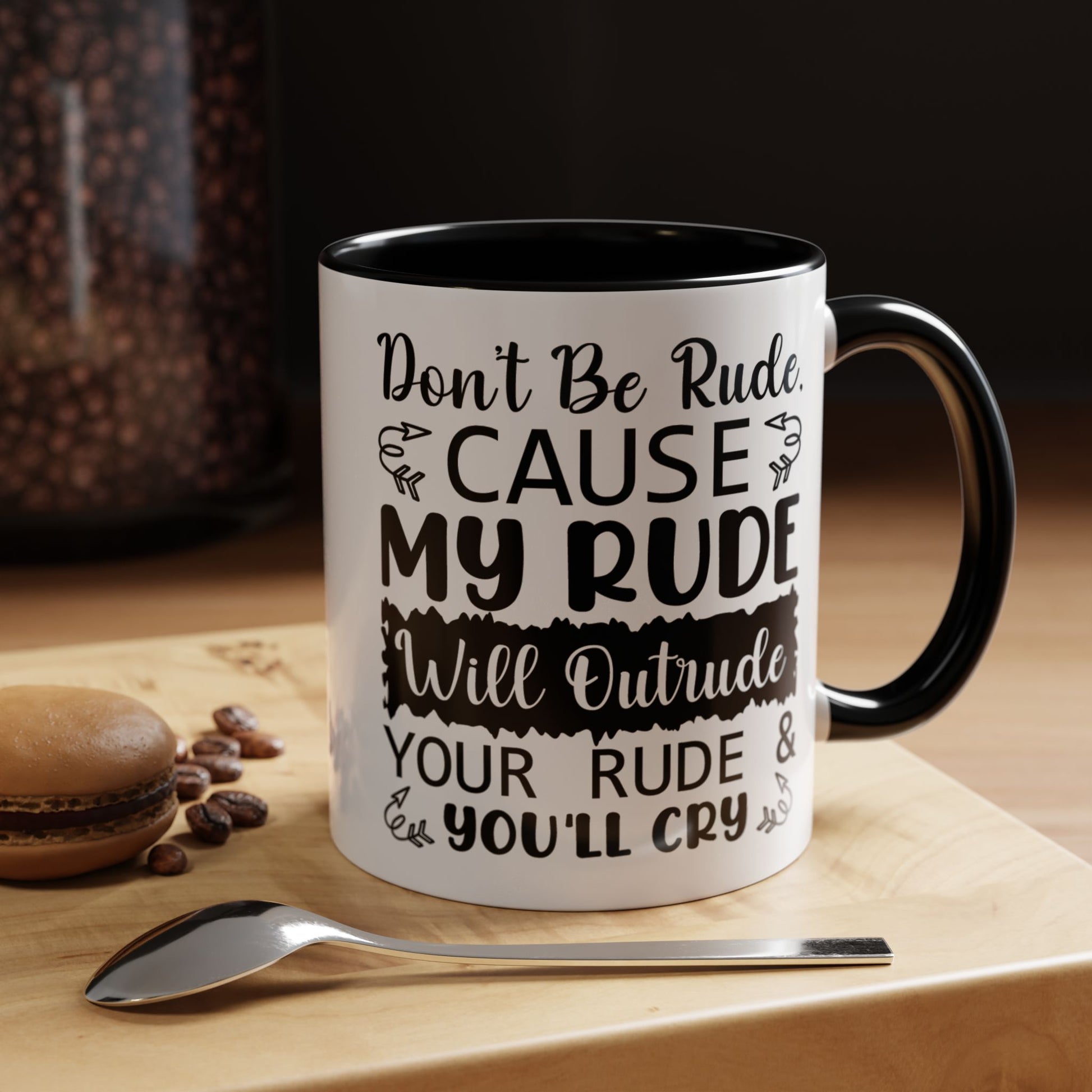 Funny Coffee Mug, Personalized Mug, Don't Be Rude Cause My Rude Will Outitude Your Rude Accent Cup (11, 15oz), Gift Under 20, White Elephant