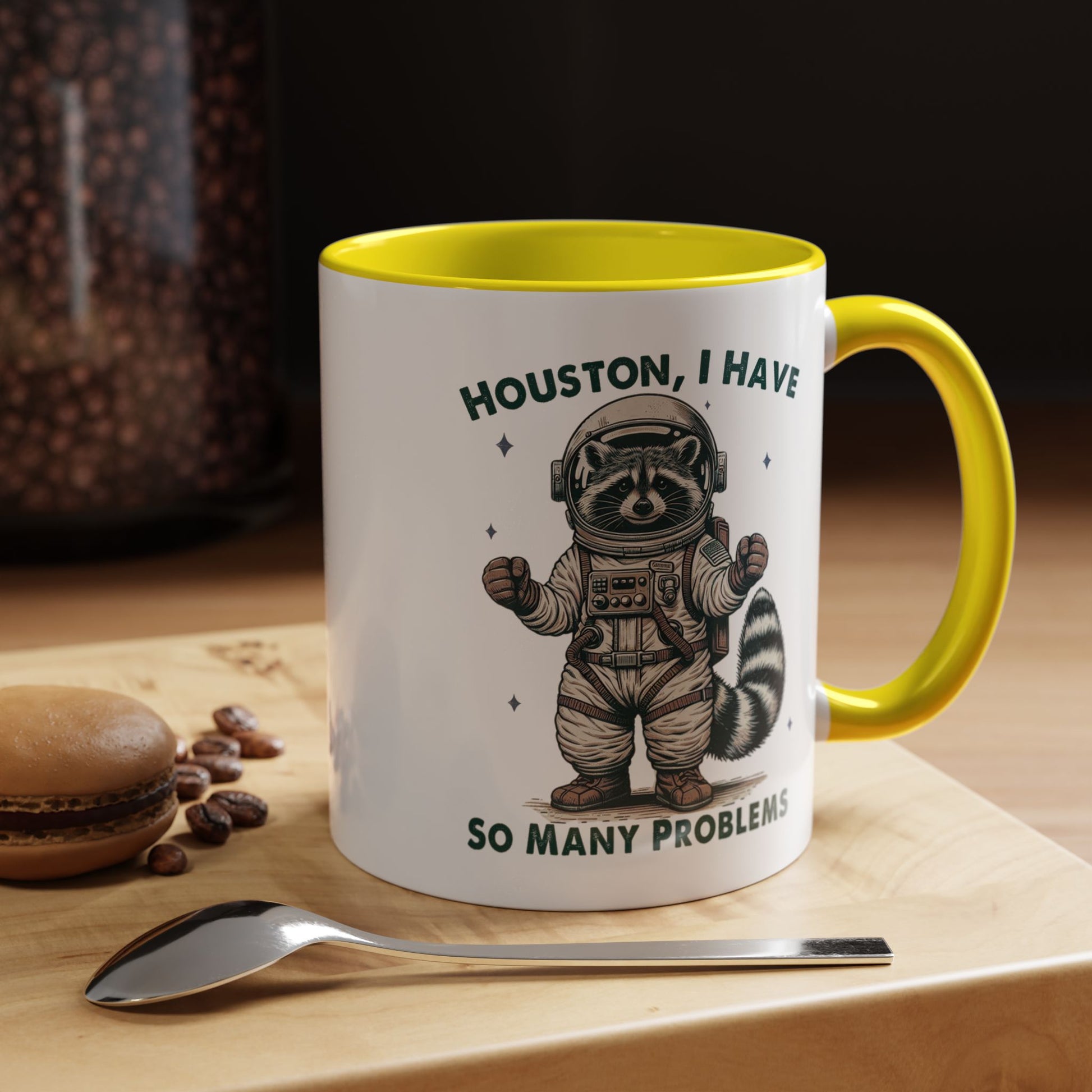 Funny Coffee Mug, Personalized Mug, Funny Racoon Houston I Have So Many Problems, Accent Cup (11, 15oz), Gift Under 20, White Elephant gift