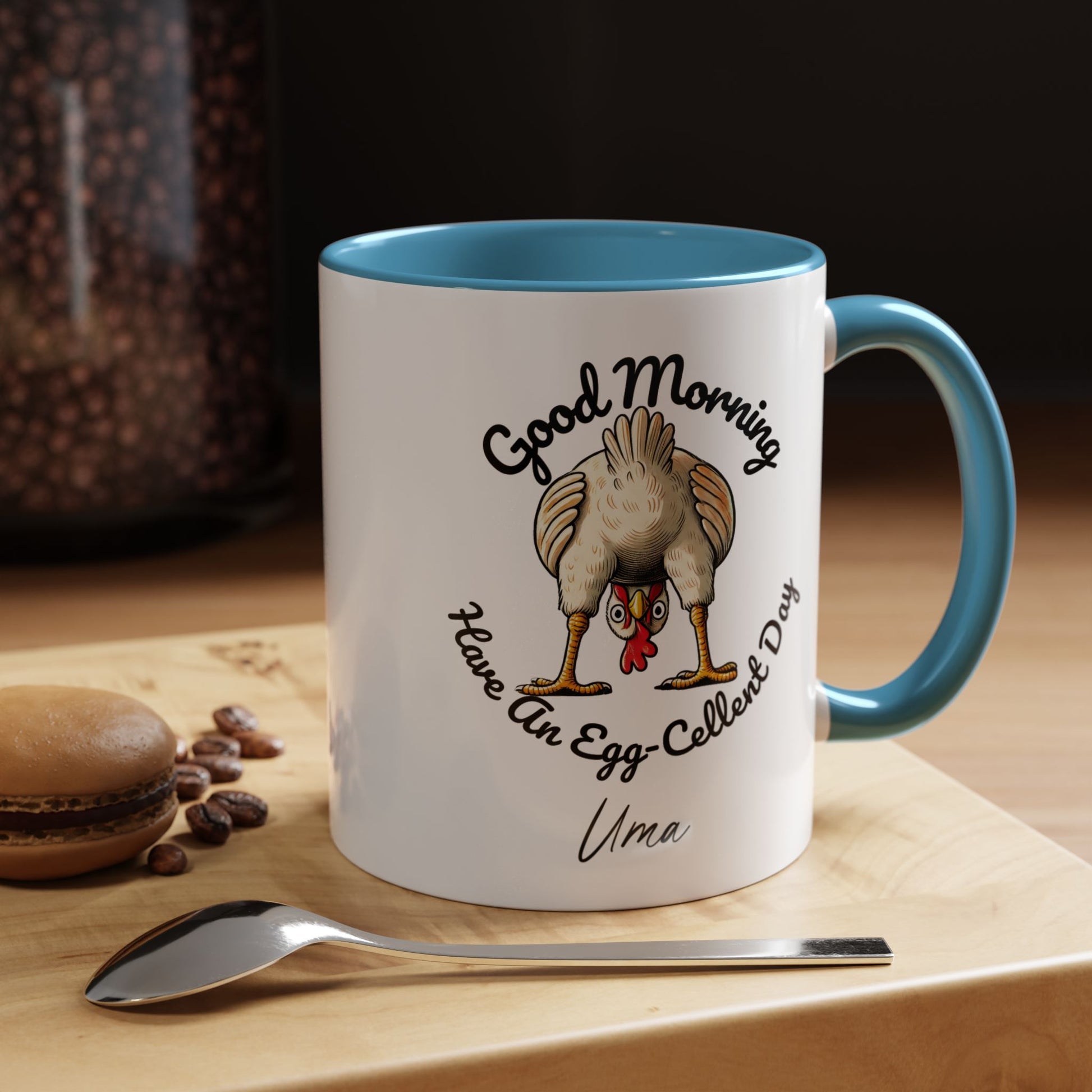 Funny Coffee Mug, Personalized Mug, Good Morning Chicken Butt, Have An Egg-Cellent Day, Gift Under 20, White Elephant gift