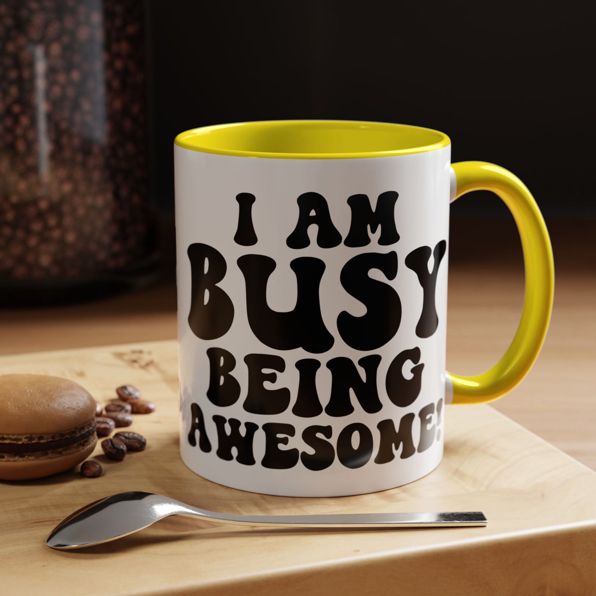 Funny Coffee Mug, Personalized Mug, I am Busy Being Awesome Accent Cup (11, 15oz), Gift Under 20, White Elephant Gift