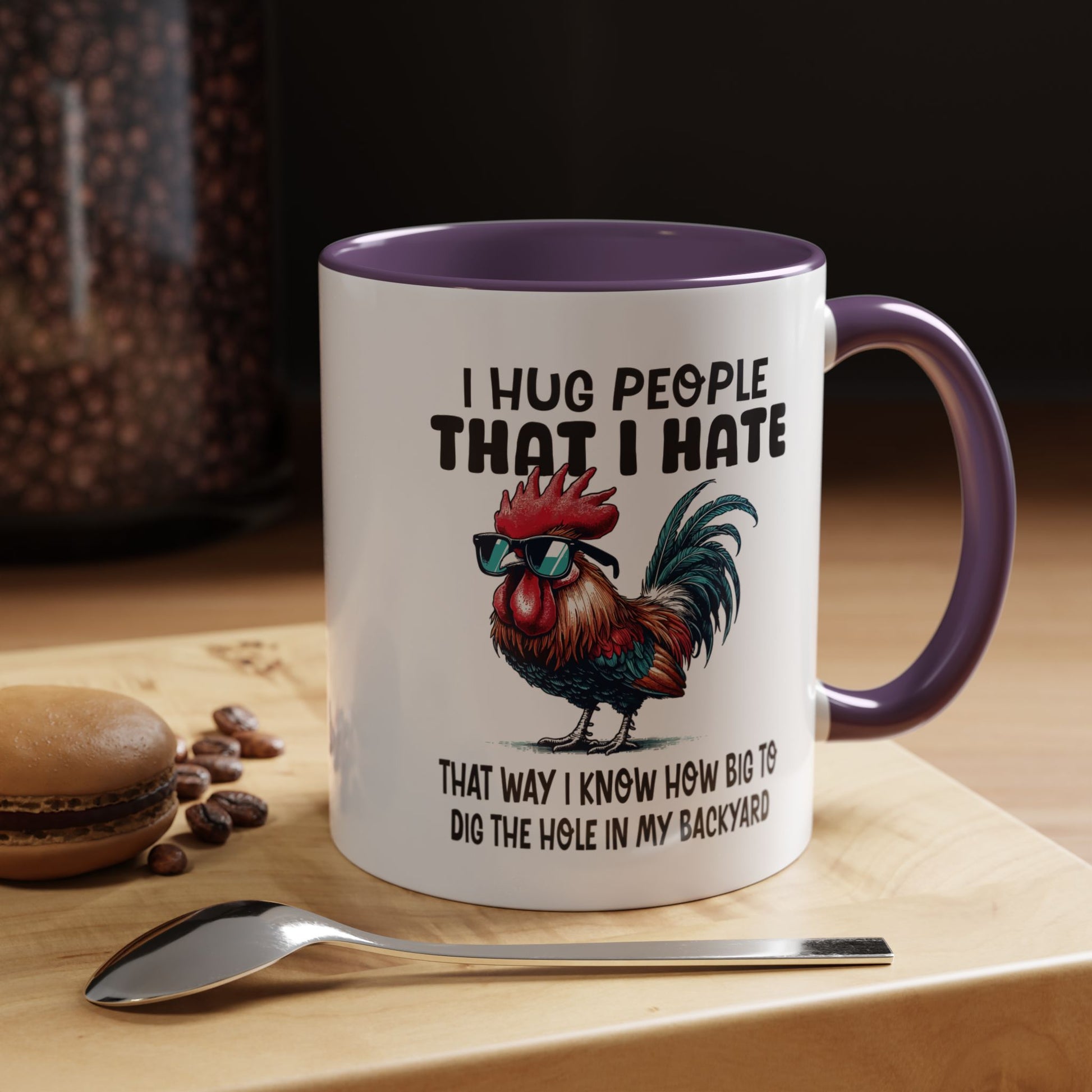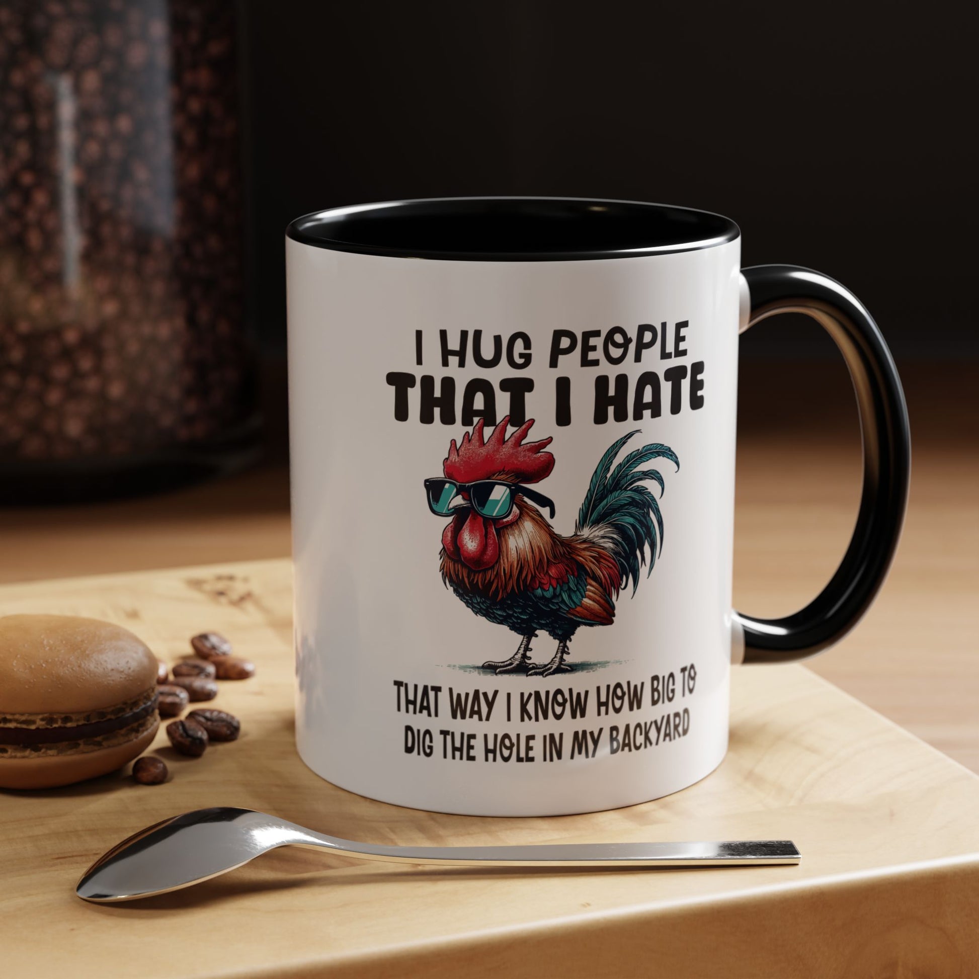 Funny Coffee Mug, Personalized Mug, I Hug People That I Hate Accent Cup (11, 15oz), Gift Under 20, White Elephant gift