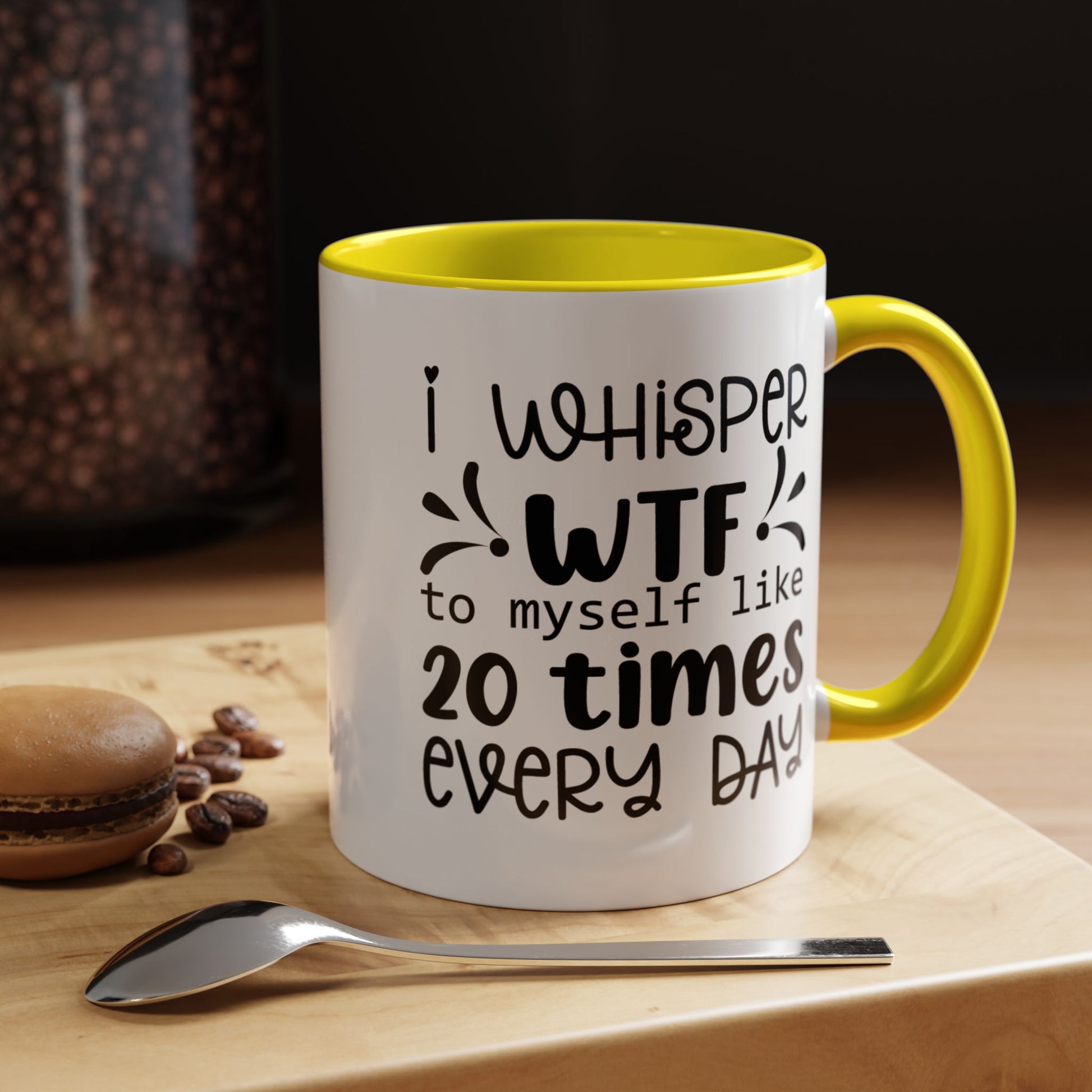 Funny Coffee Mug, Personalized Mug, I Whisper WTF to Myself 20 Times Every Day, Accent Cup (11, 15oz), Gift Under 20, White Elephant