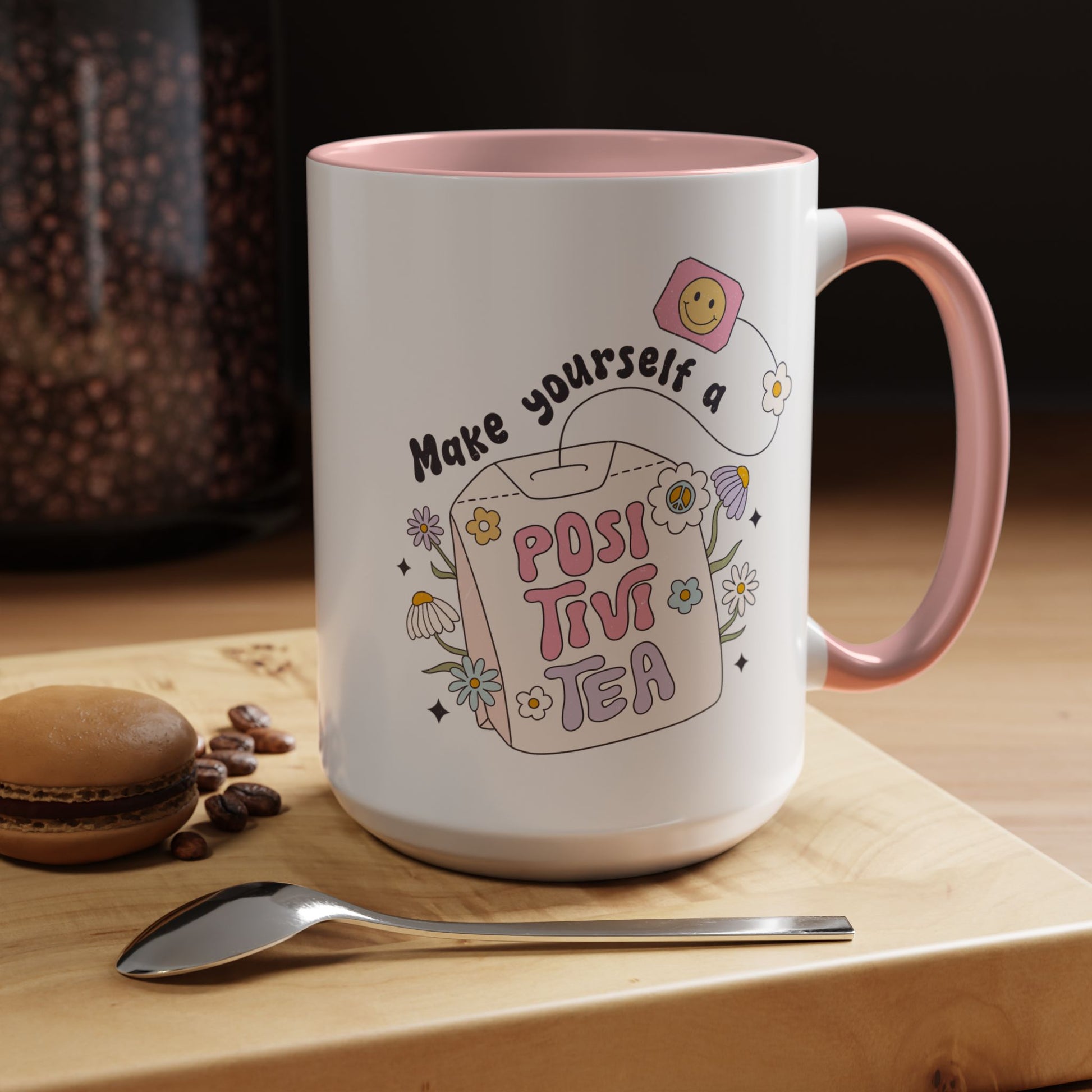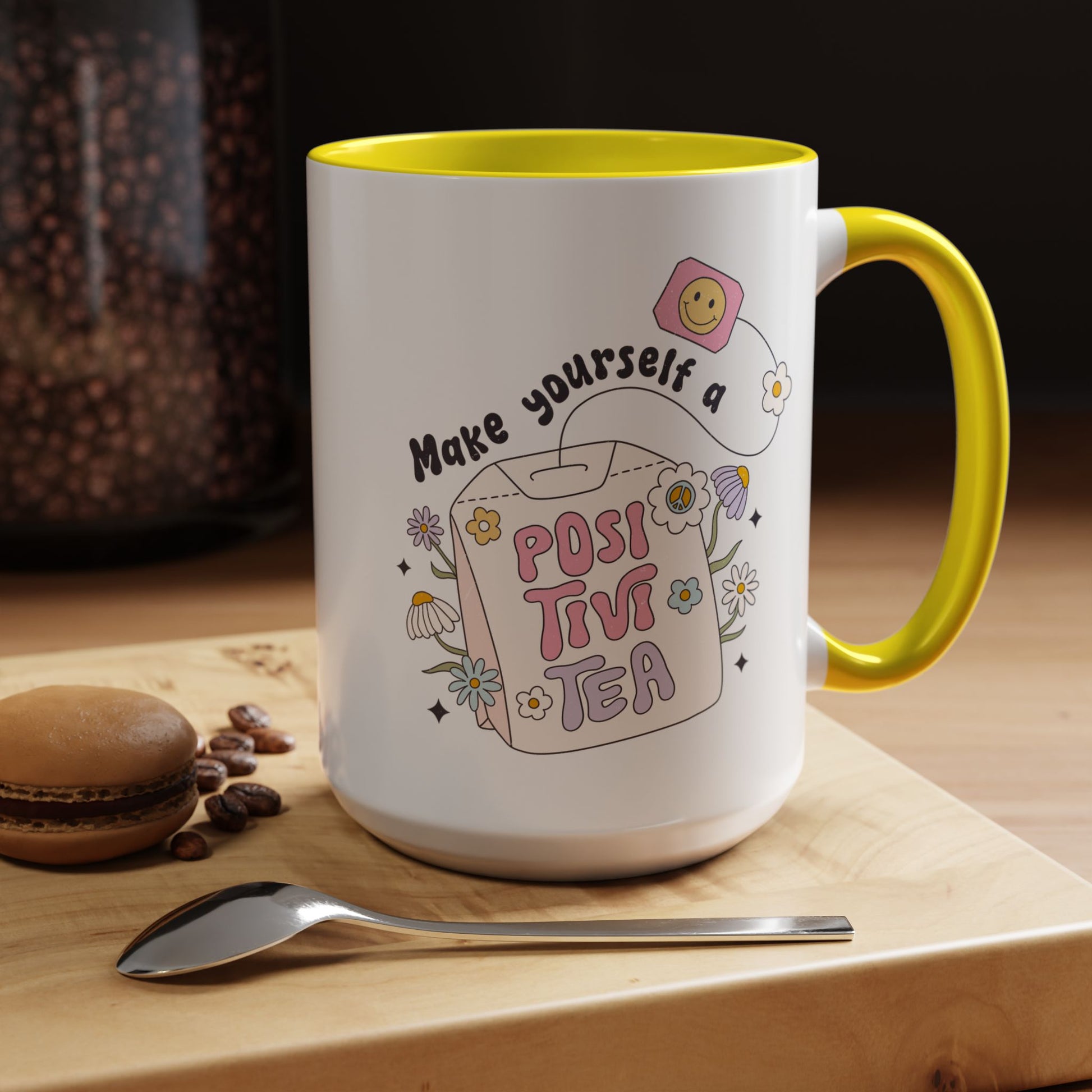 Funny Coffee Mug, Personalized Mug, Make Yourself A Posi -Tivi-Tea Accent Cup (11, 15oz), Gift Under 20, White Elephant, Motivational Cup