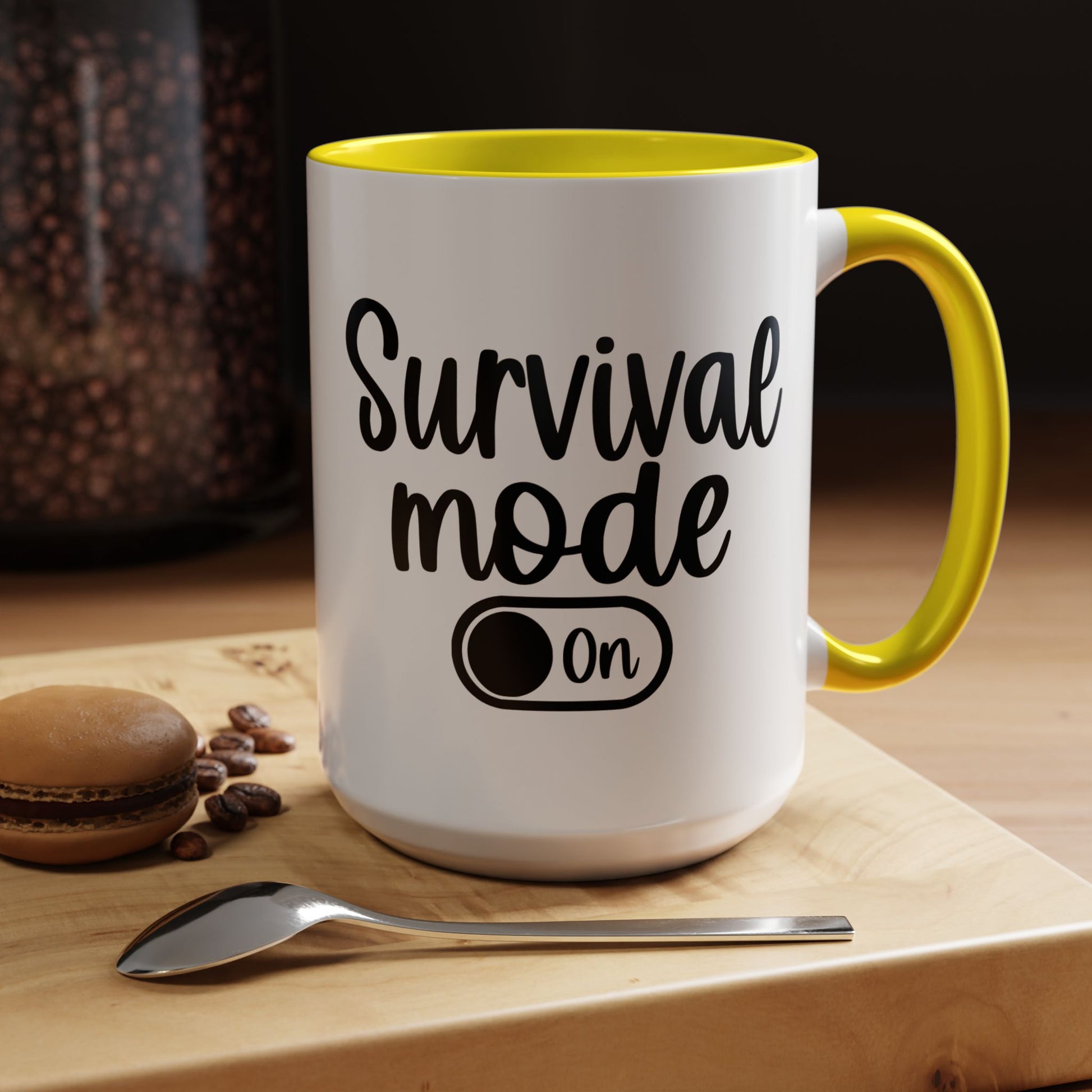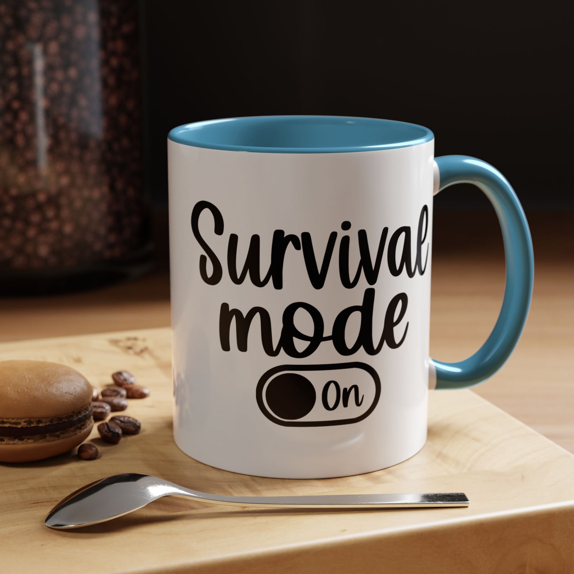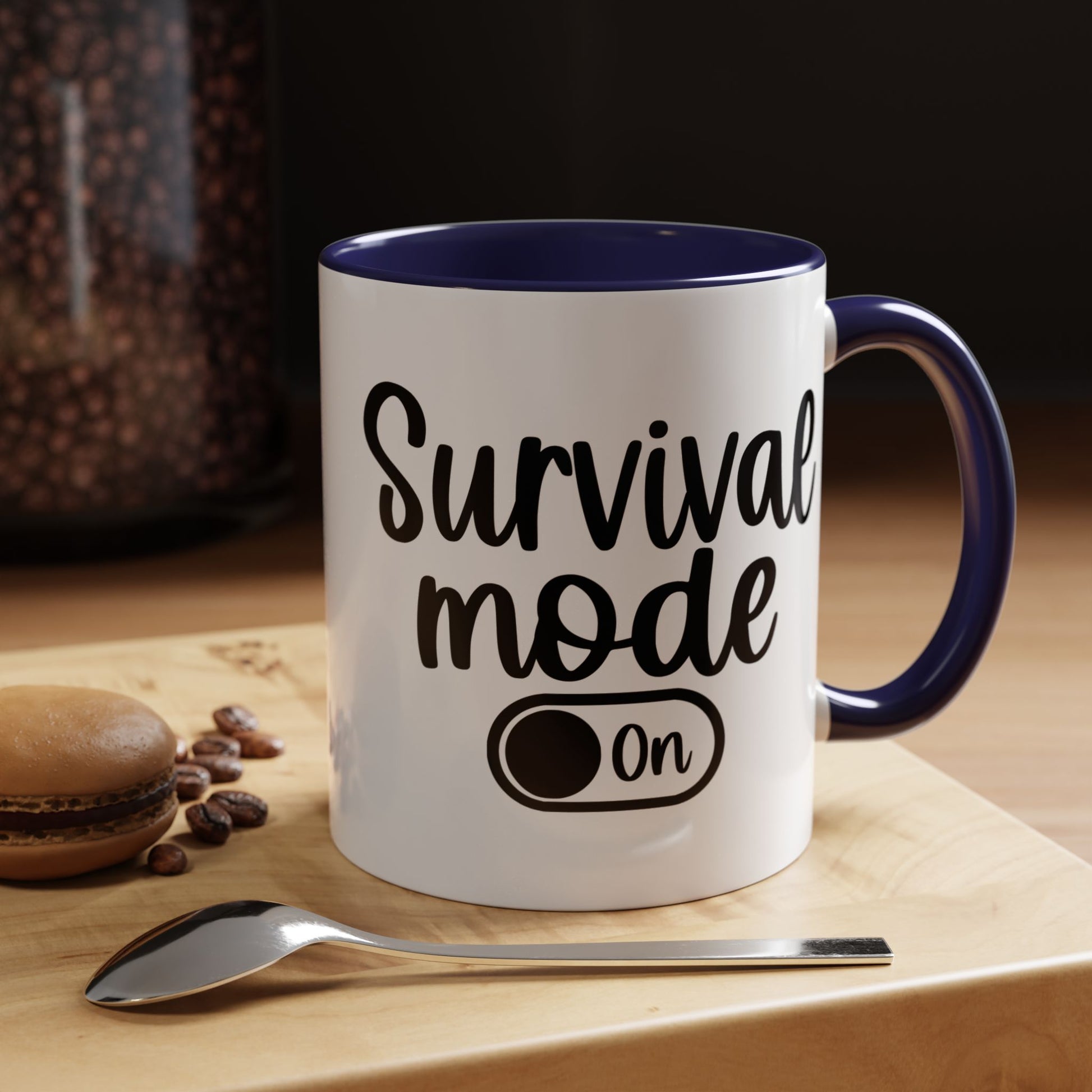 Funny Coffee Mug, Personalized Mug, Survival Mode On Accent Cup (11, 15oz), Gift Under 20, White Elephant