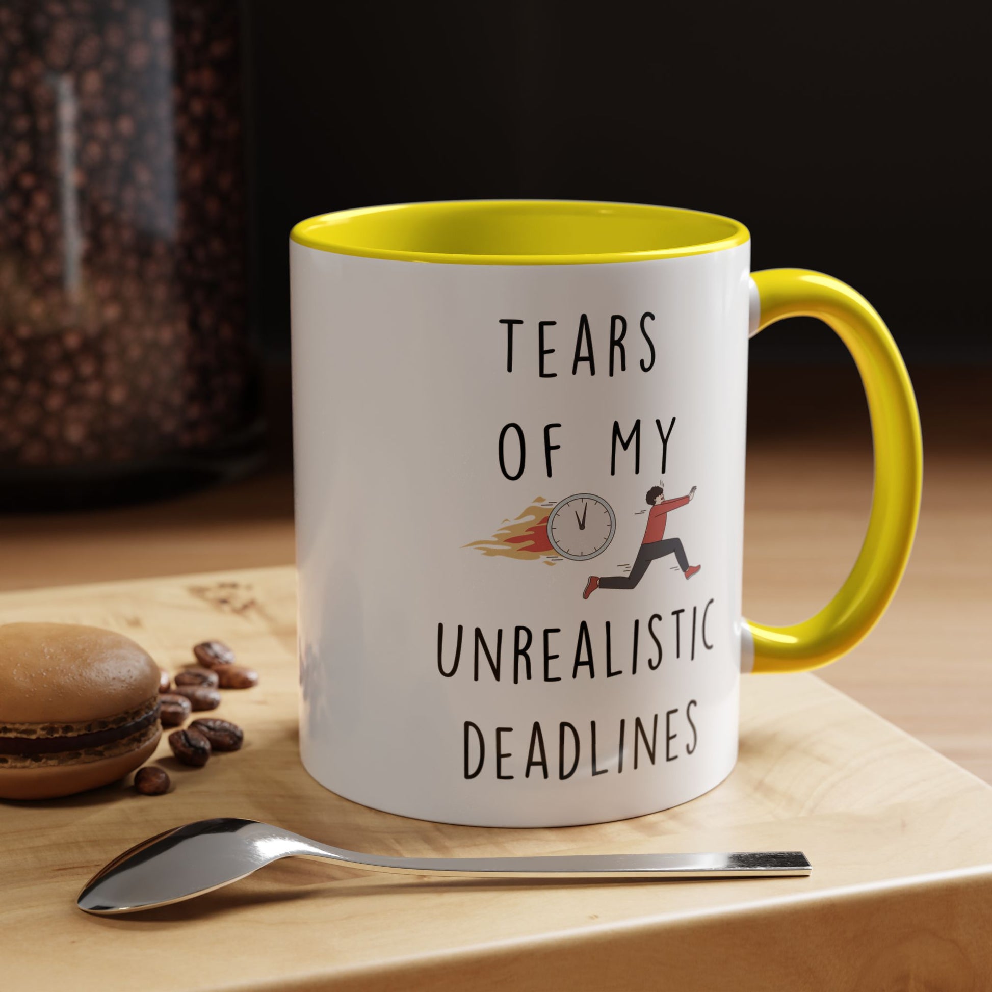 Funny Coffee Mug, Personalized Mug, Tears Of My Unrealistic Deadlines, Accent Cup (11, 15oz), Sarcastic Mug, Tea coffee Cup, Gift Under 20