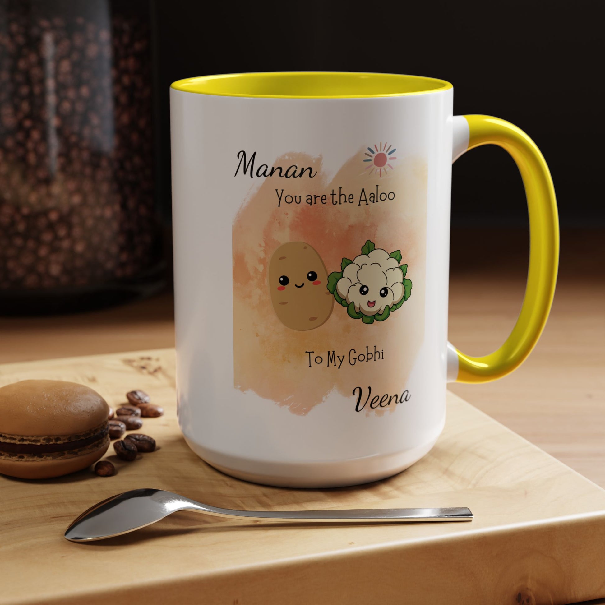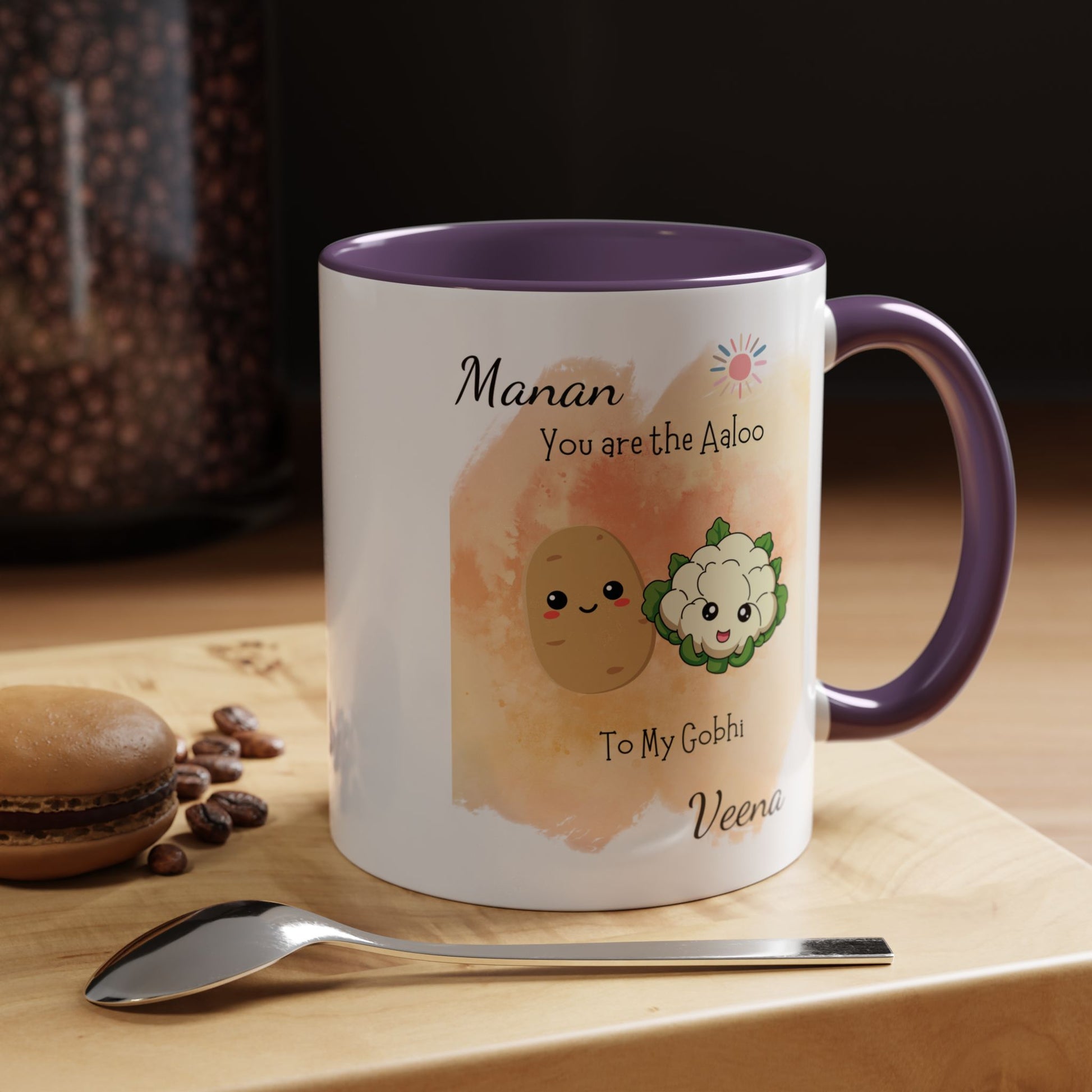 Funny Coffee Mug, Personalized Mug, You Are Aaloo To My Gobhi Couple Accent Cup 11/15oz, Anniversary, Valentines, Wedding, Romantic Him her