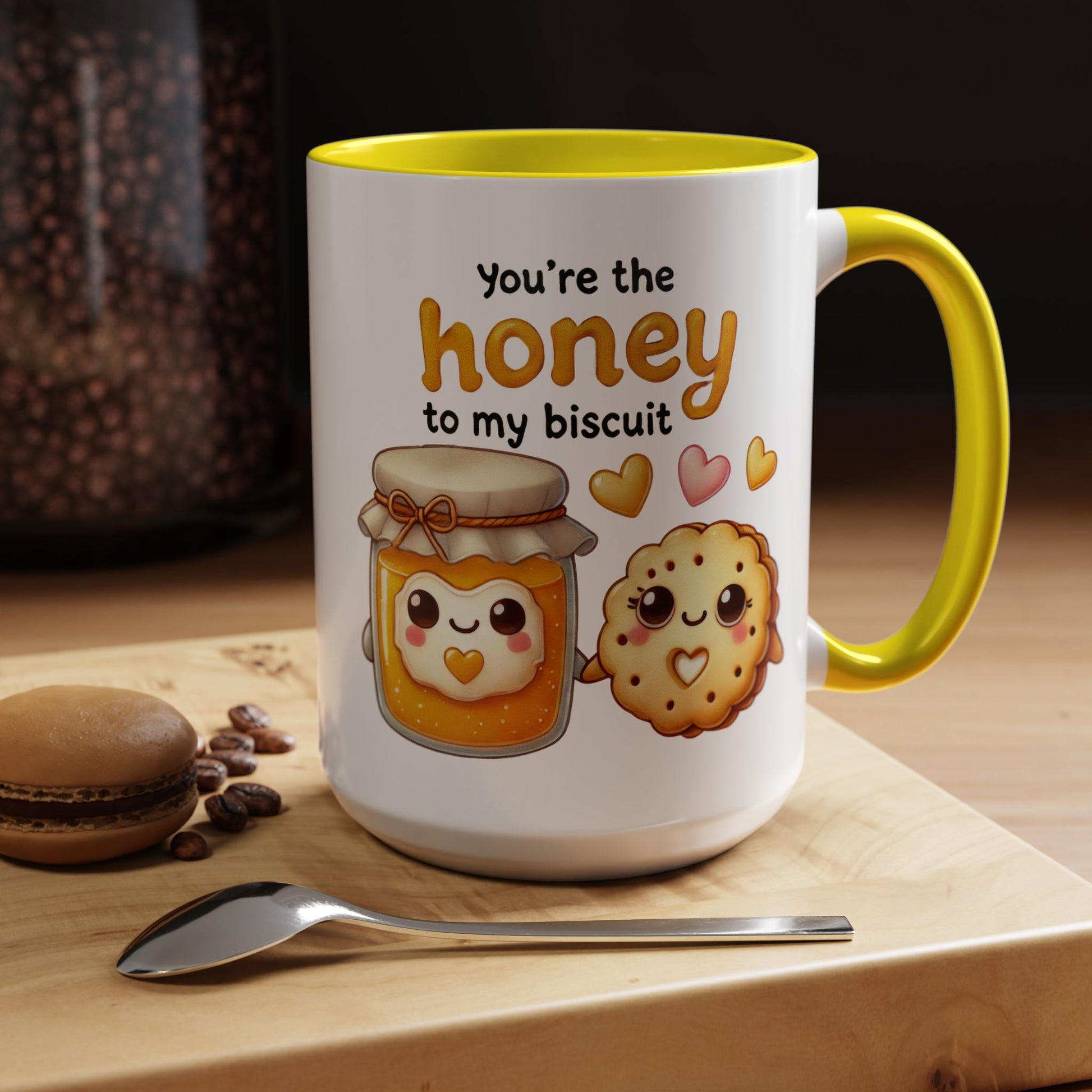 Funny Coffee Mug, Personalized Mug, You Are The Honey To My Biscuit Accent Cup 11/15oz Anniversary Wedding Valentines Romantic Gift Him her