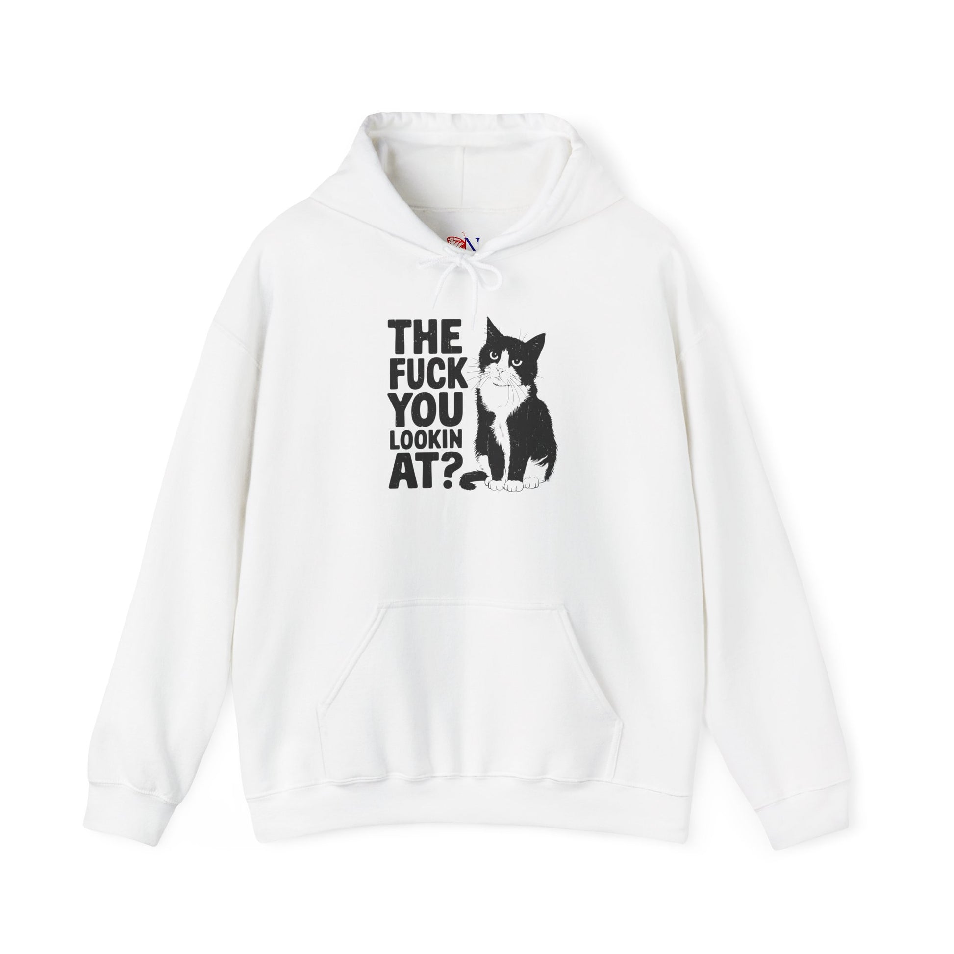 Graphic Hoodie — 'The Fuck You Lookin' At?' Cat Print Hooded Sweatshirt