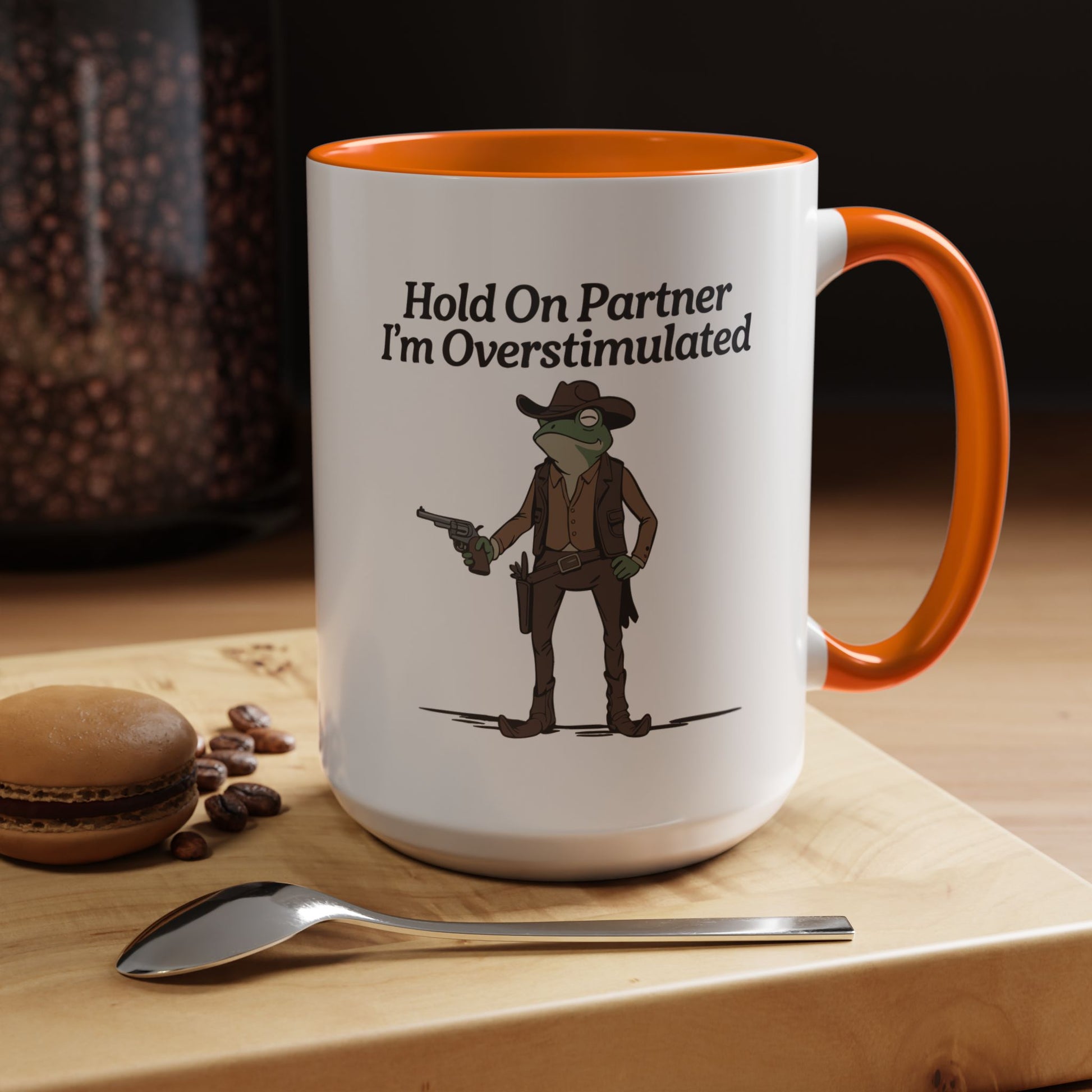 Hold On Partner Frog | Funny Coffee Mug, Sarcastic Tea Cup, Unique Gift Idea
