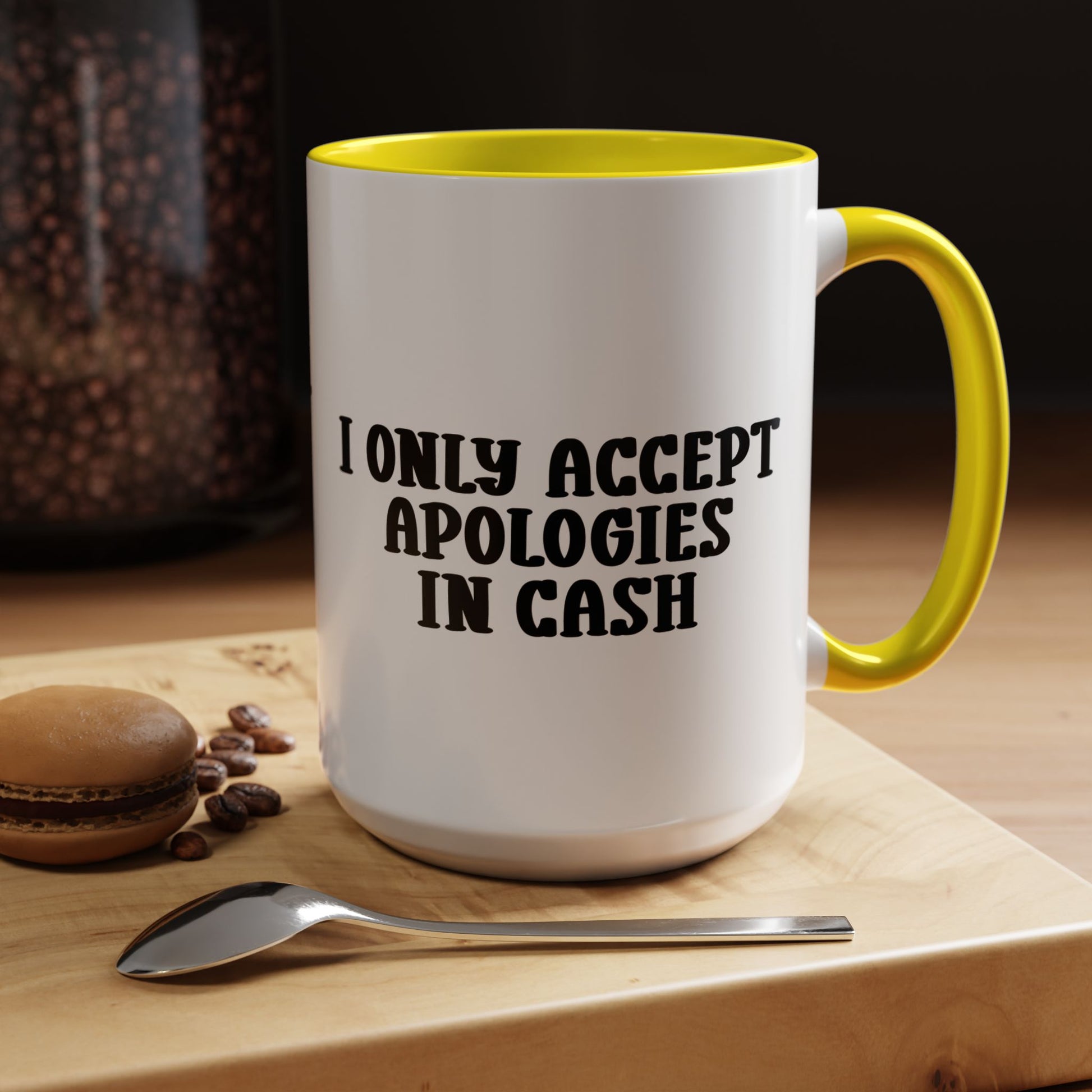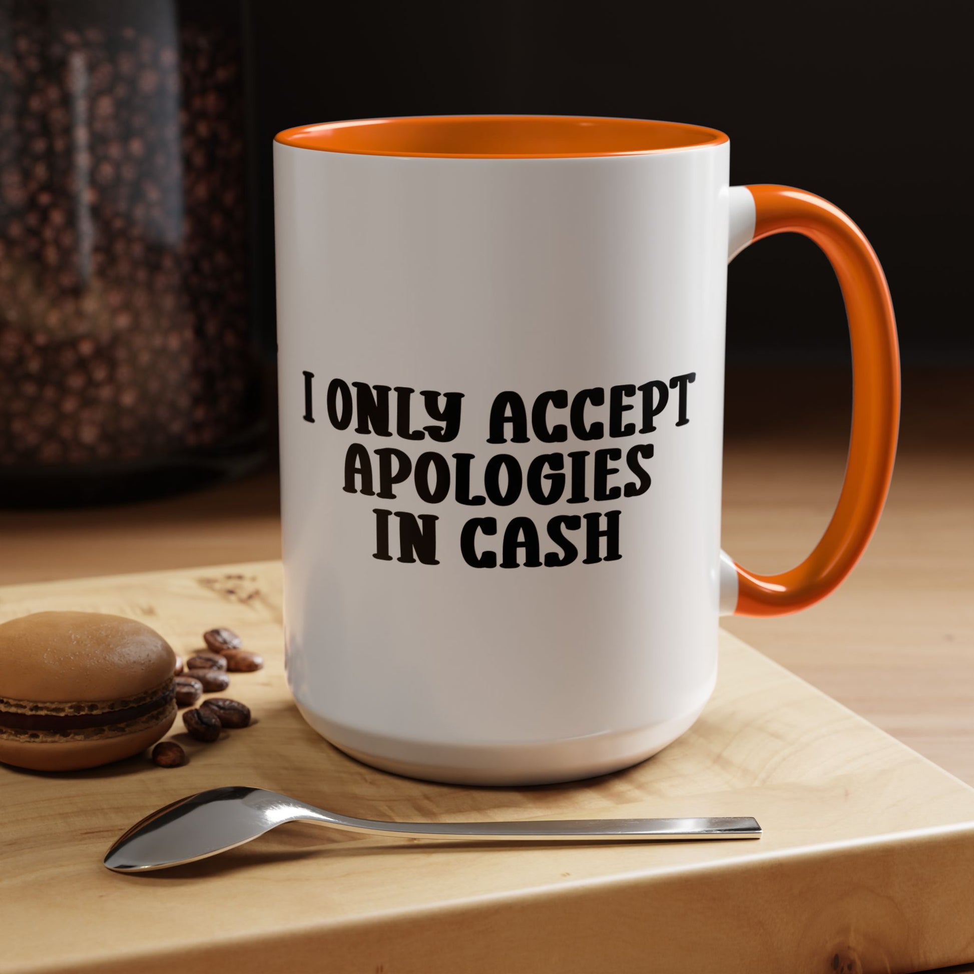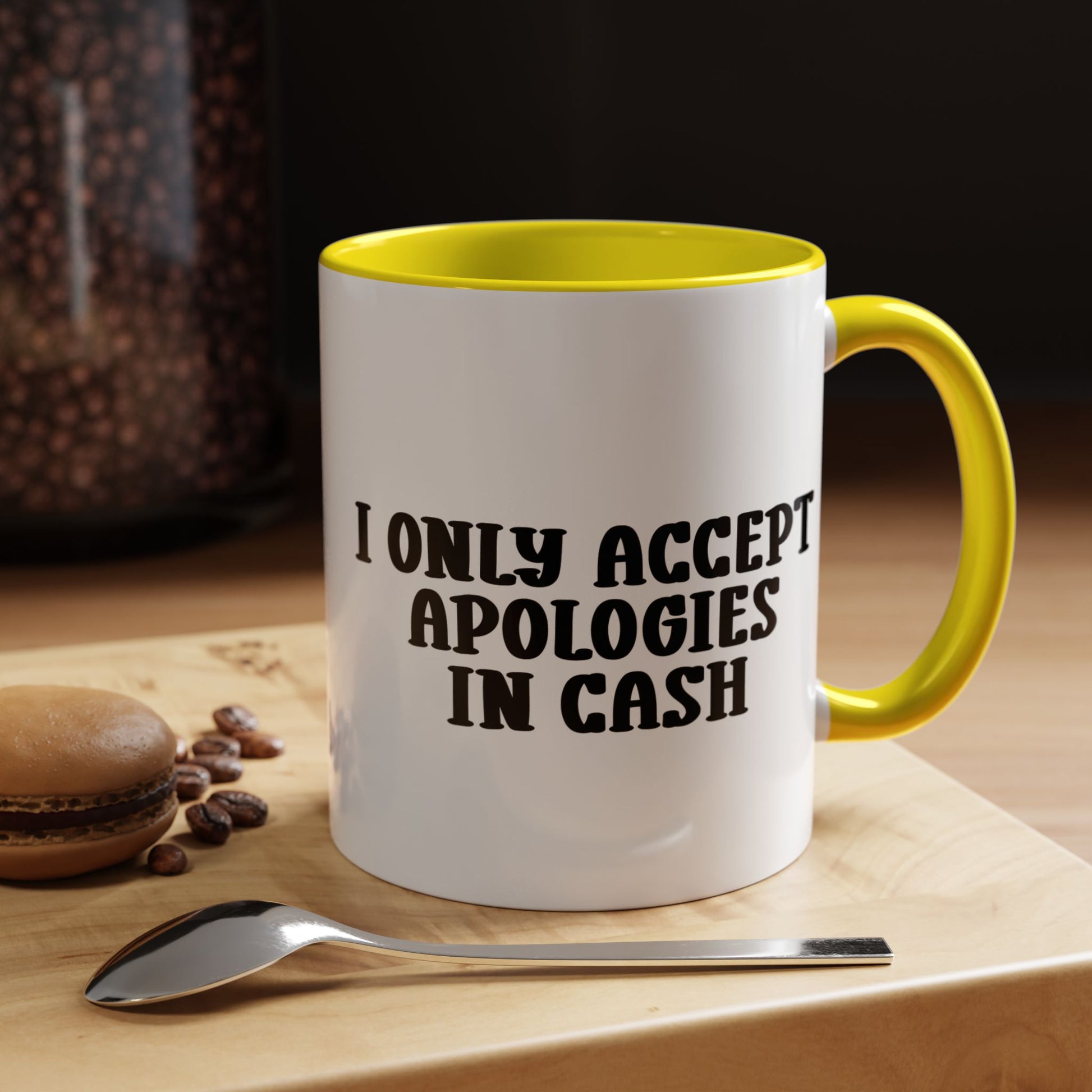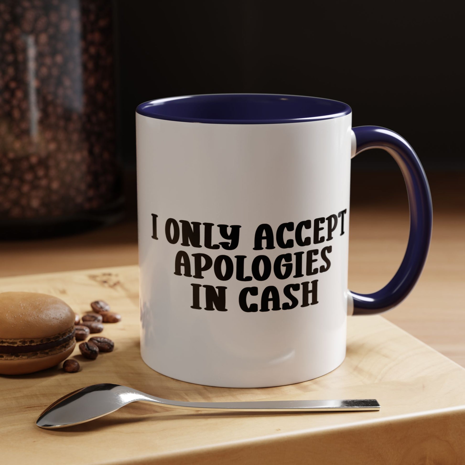 I Only Accept Apologies in Cash | Funny Coffee Mug, Sarcastic Tea Cup, Unique Gift Idea