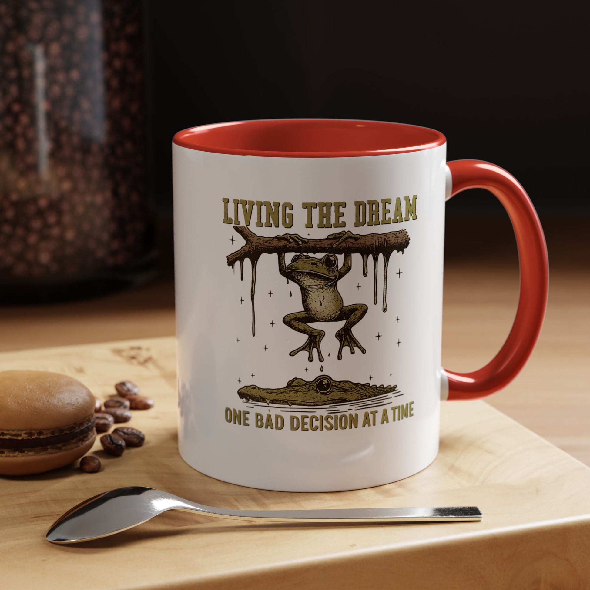 Living The Dream One Bad Decision | Funny Coffee Mug, Sarcastic Tea Cup, Unique Gift Idea