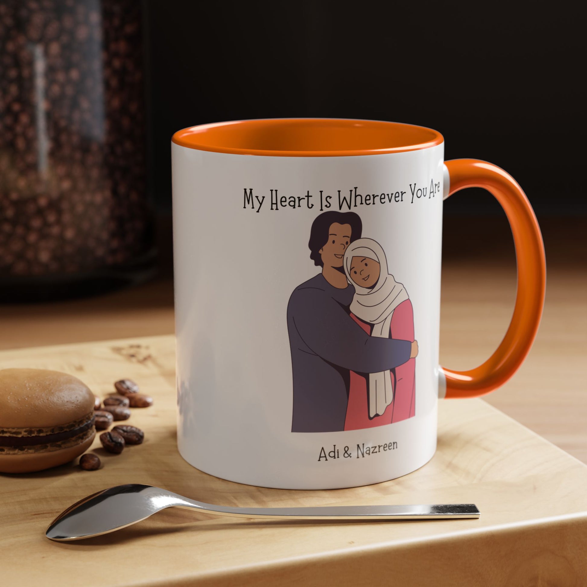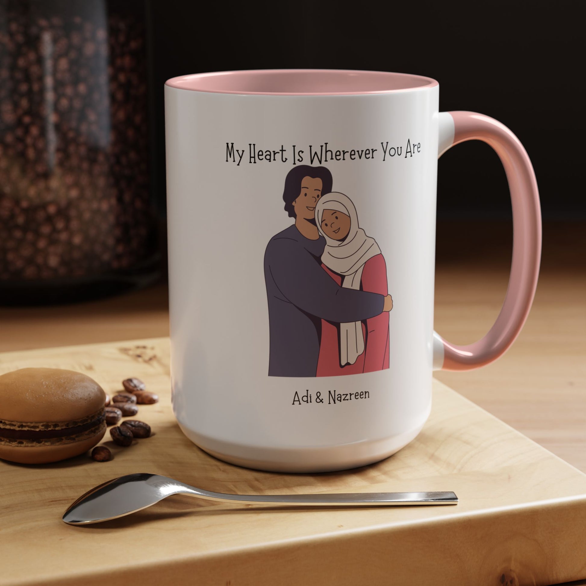 My Heart Is Wherever You Are Personalized Romantic Mug, Accent Cup 11/15oz, Anniversary Valentines, V-Day Mug, Customized Couples Gift