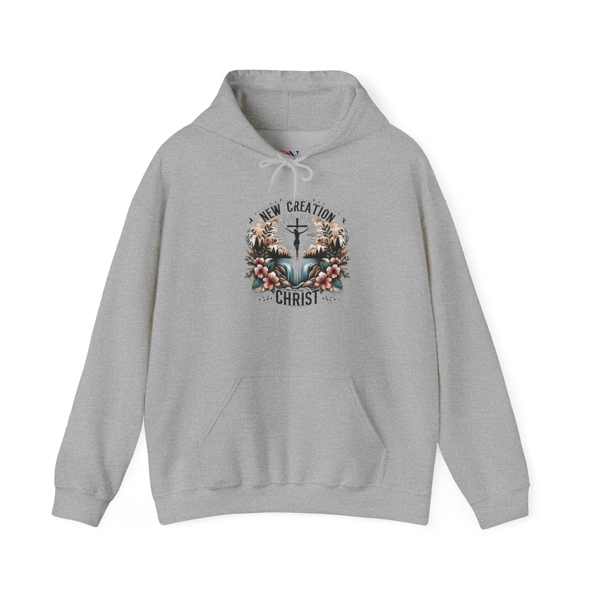 New Creation in Christ Hoodie - Christian Faith Cross Floral Pullover