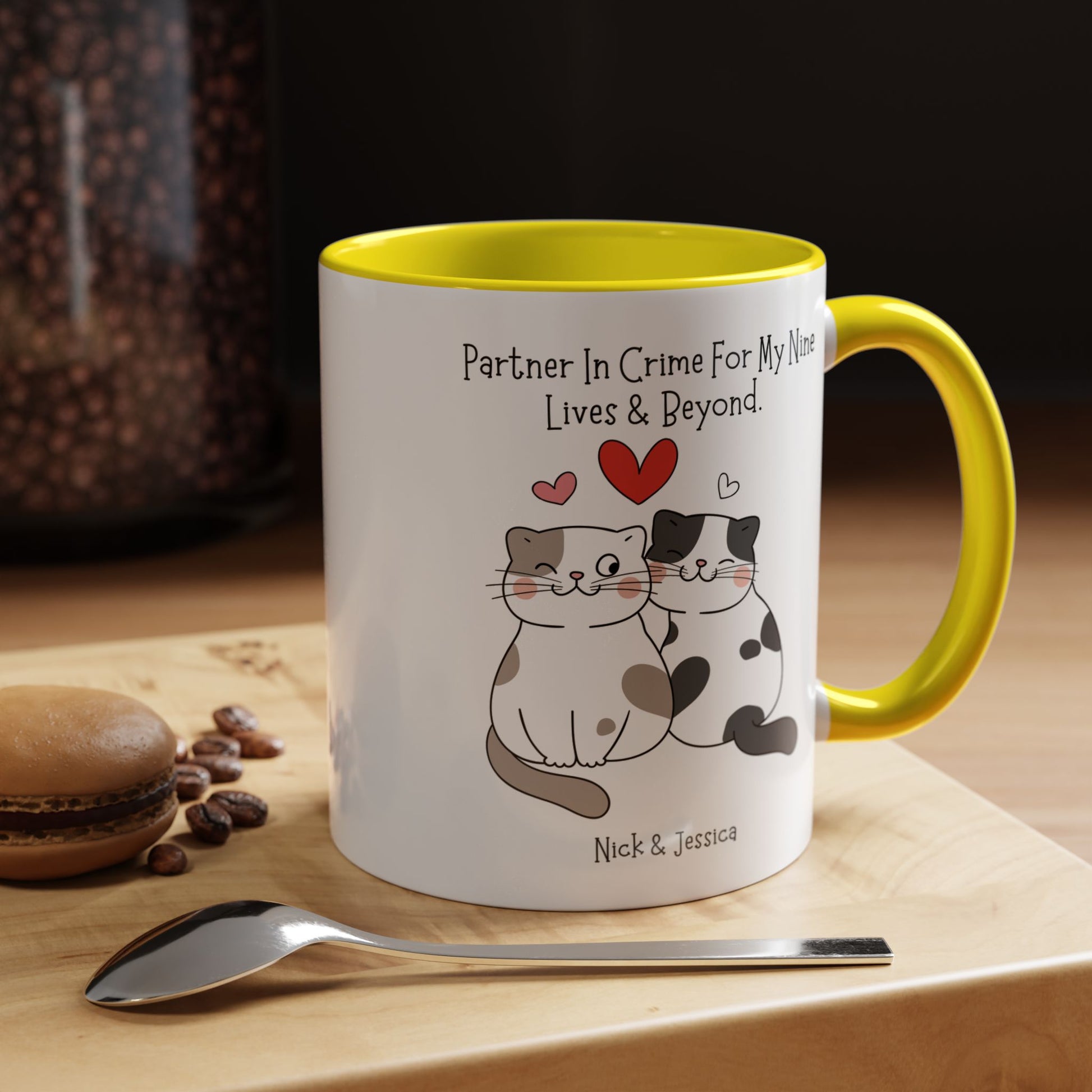 Partner In Crime For My Nine Lives And Beyond Personalized Romantic Mug, Accent Cup 11/15oz, Anniversary Valentines, V-Day Mug, Couples Gift