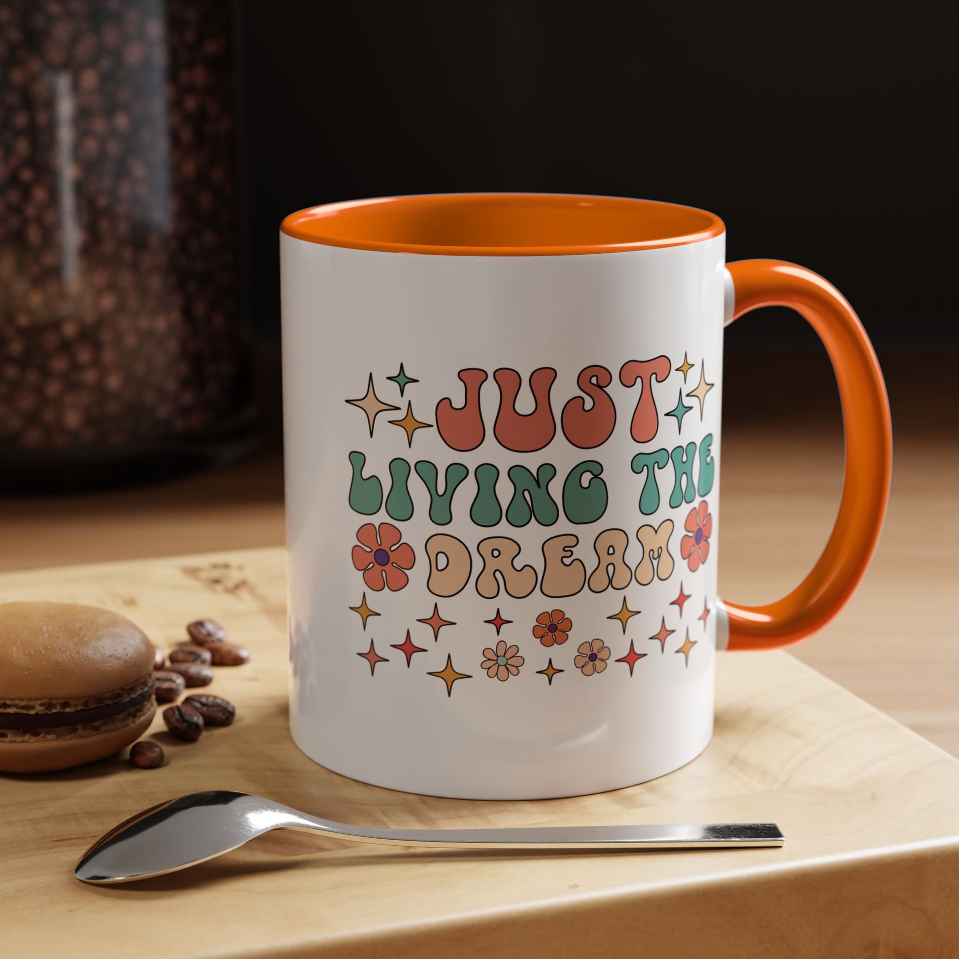 Personalized Mug, Just Living The Dream Accent Cup (11, 15oz), Gift Under 20, White Elephant, Positivity Motivational Mug, Happy Vibes