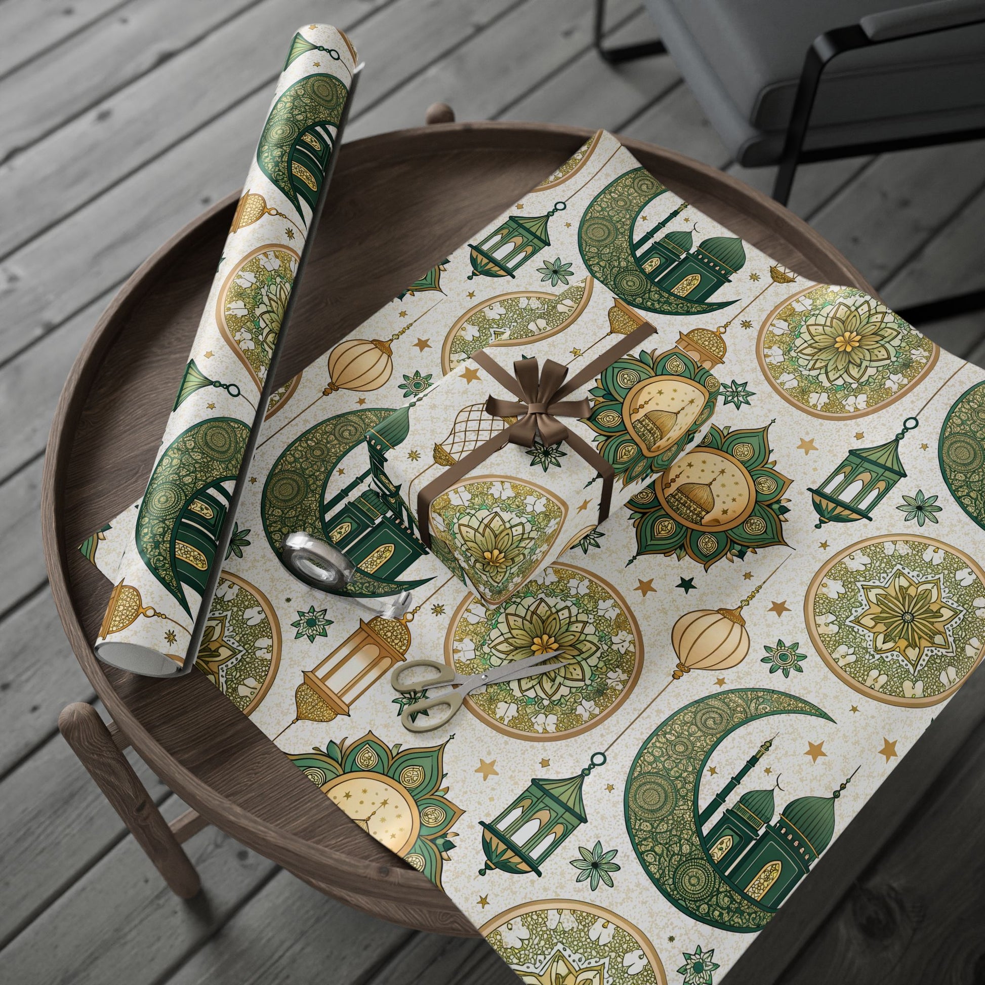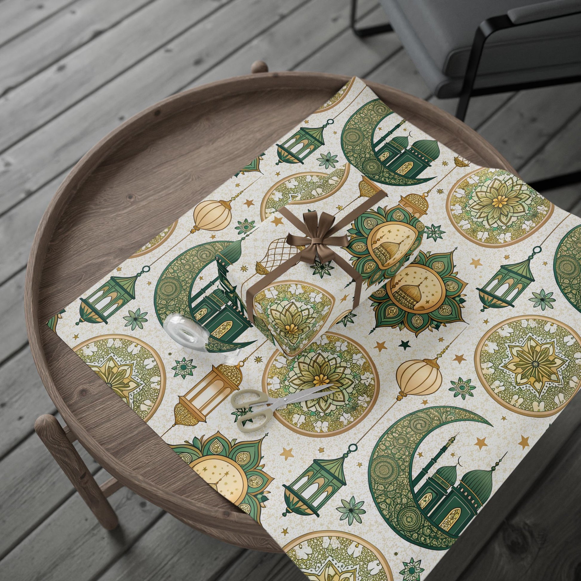 Ramadan Wrapping Paper - Islamic Gift Wrap With Mosque, Moon and Stars Design