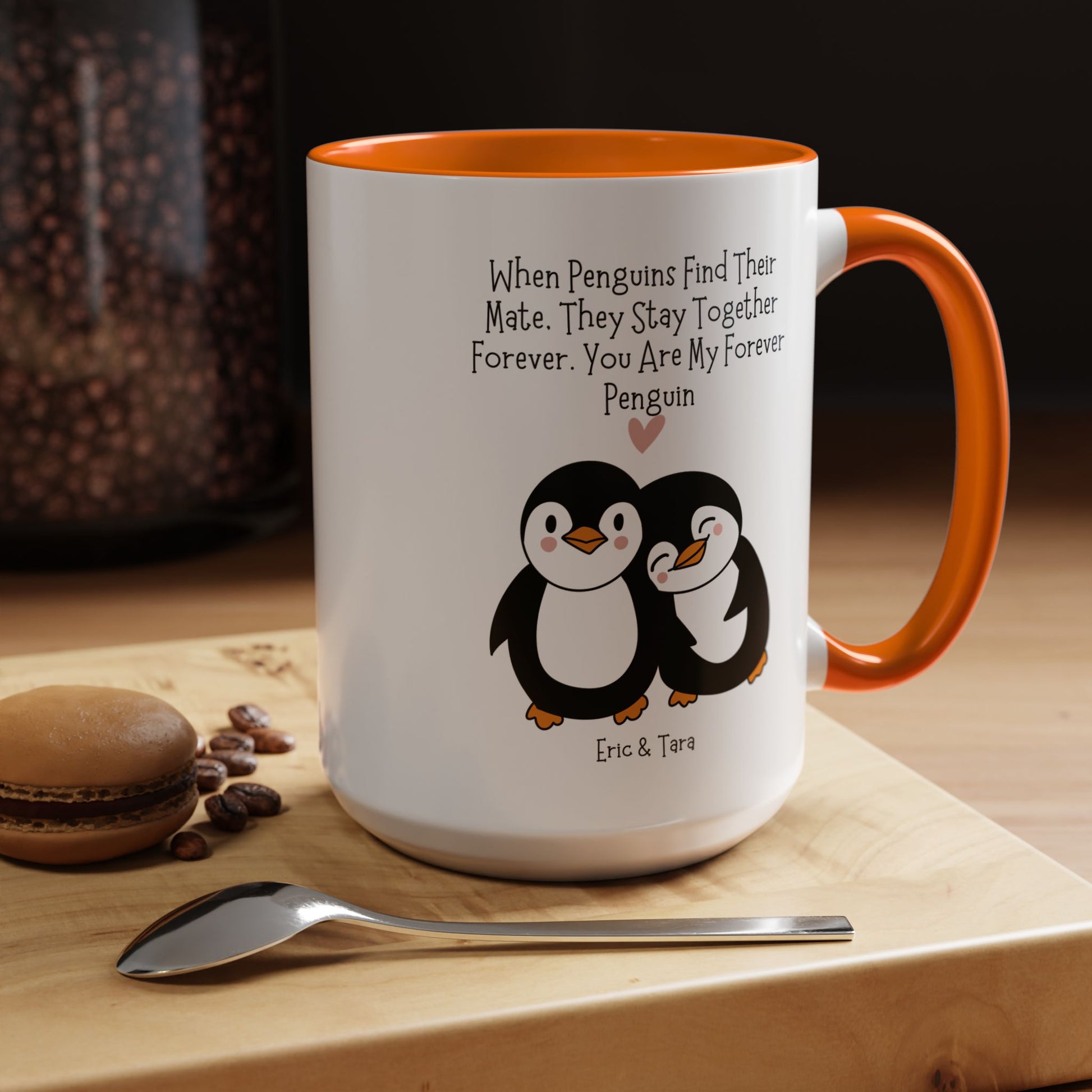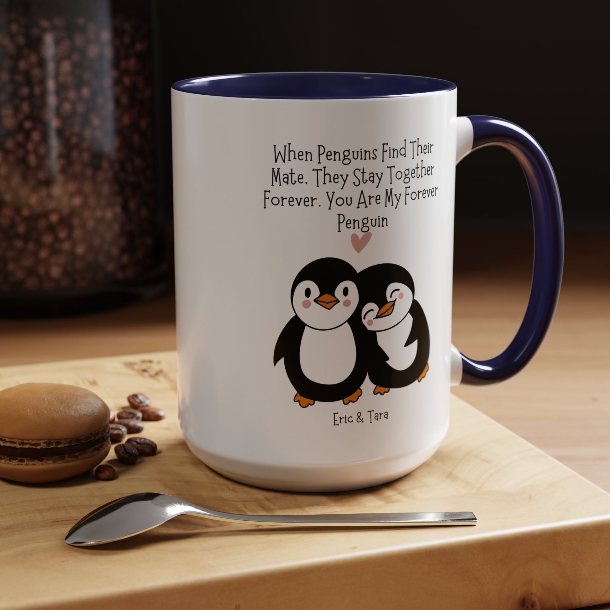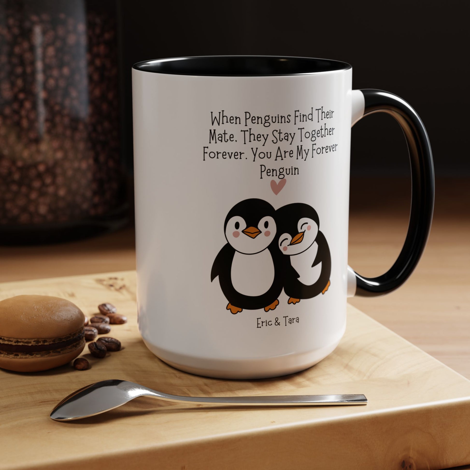 You Are My Forever Penguin Personalized Romantic Mug Accent Cup 11/15oz, Anniversary Valentines V-Day Custom Couples Gift for BF, GF, Spouse